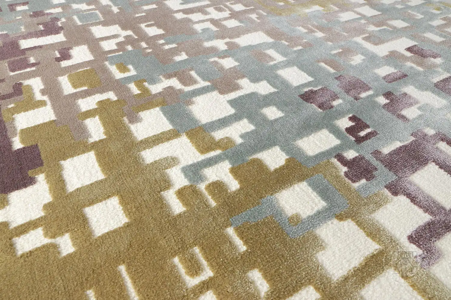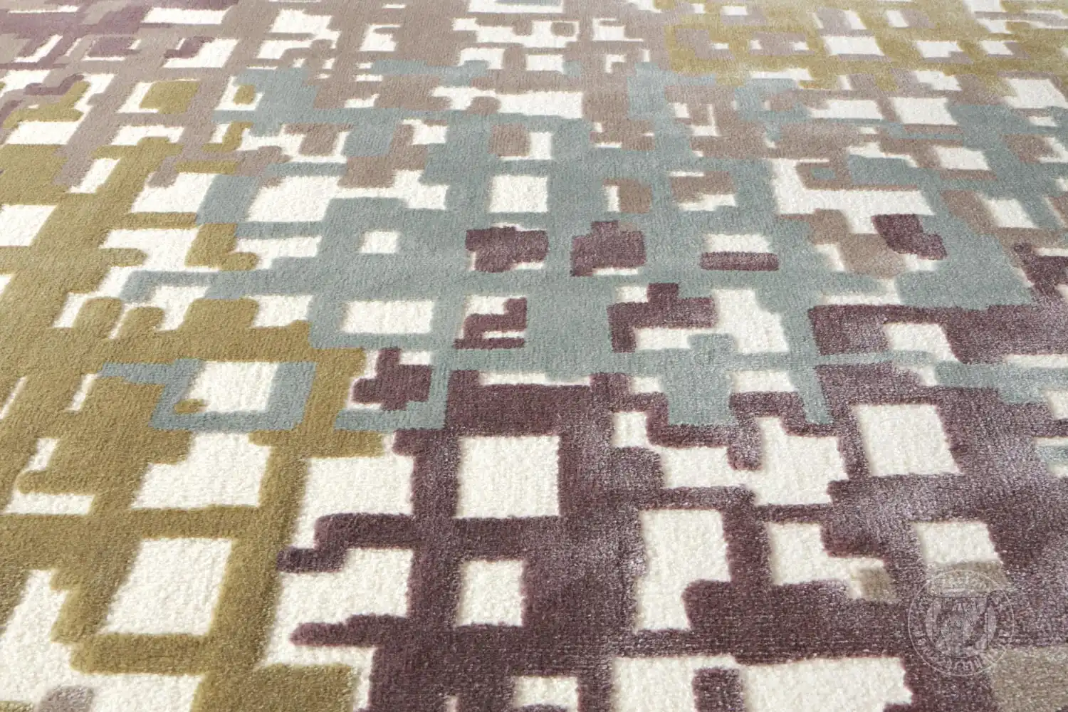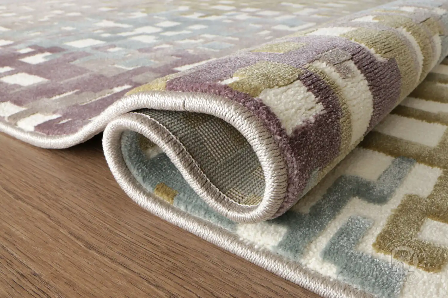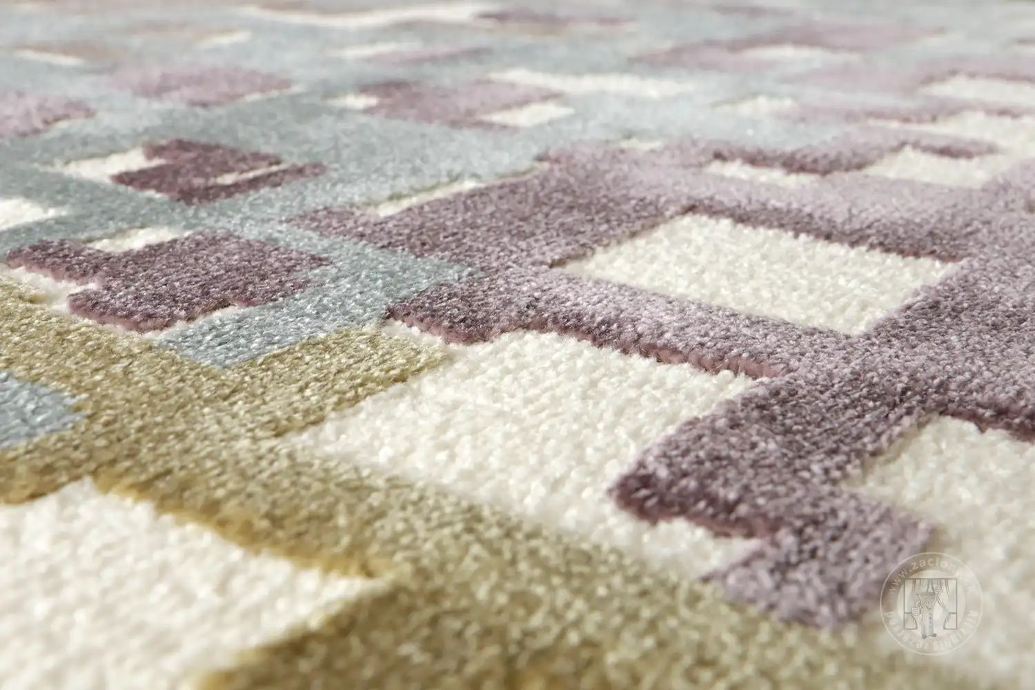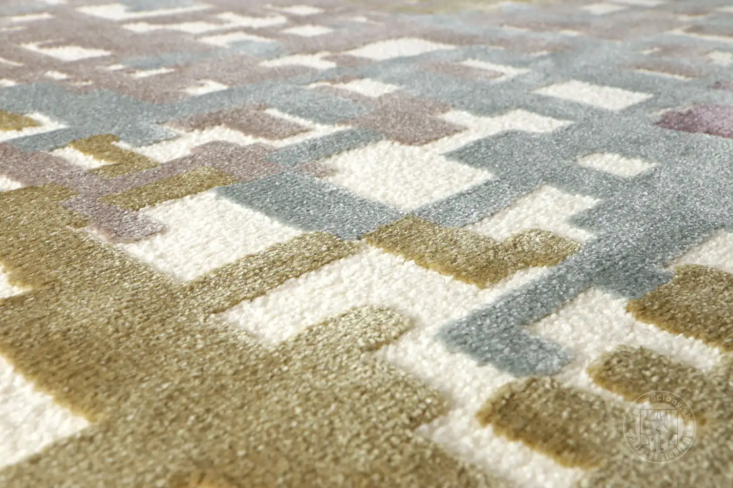 Luxusný koberec s moderným vzorom, vyrobený z veľmi jemného heatsetovaného polypropylénového vlákna a polyesteru. Skladá sa z niekoľkých pododtieňov pre dosiahnutie excelentnej farebnosti a luxusného vzhľadu. Rôzne výšky vysoko hustého vlasu vytvárajú zaujímavý 3D efekt.