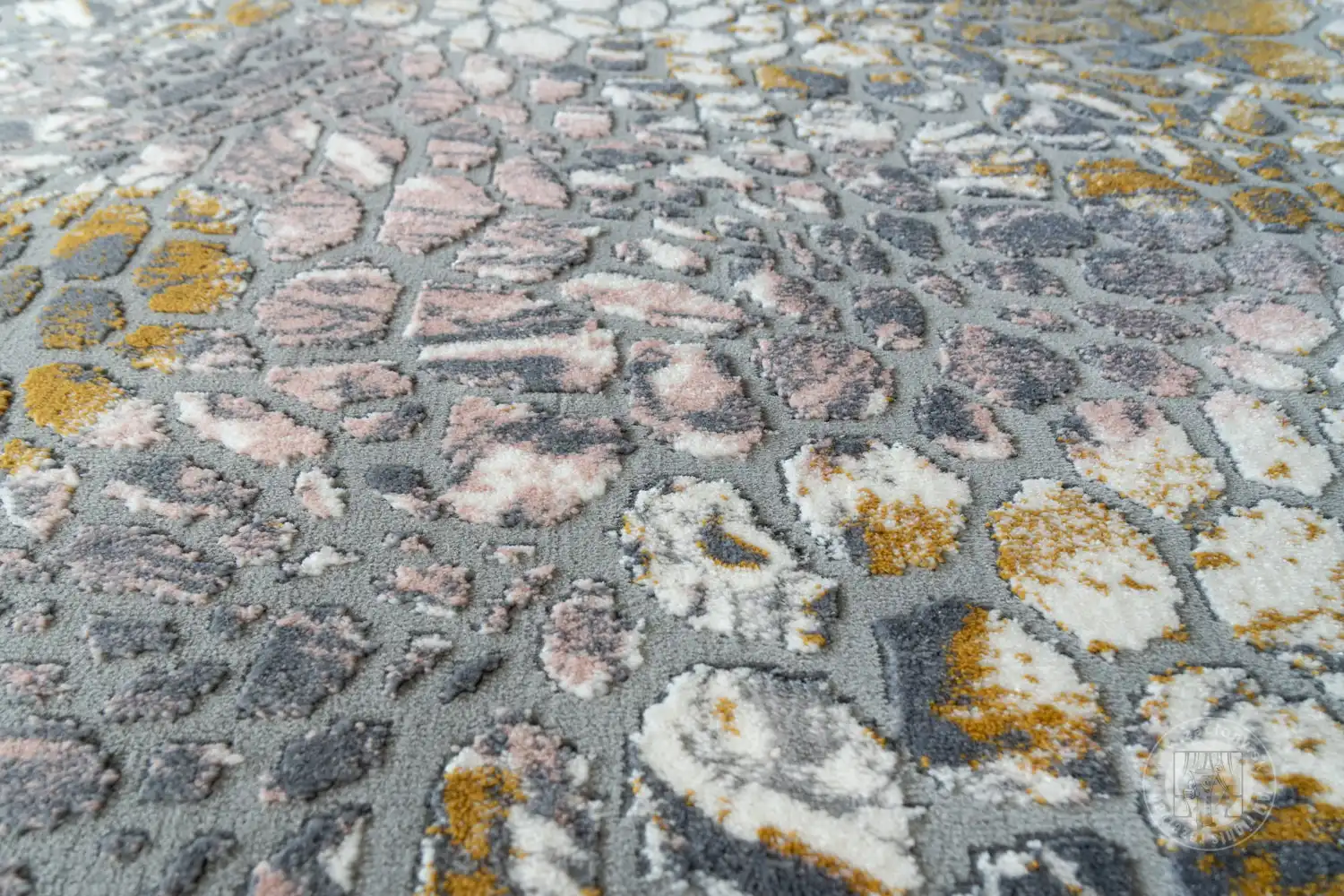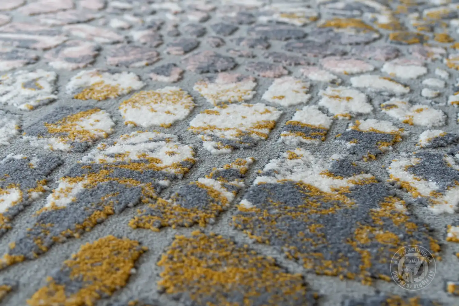 Luxusný koberec Zara s moderným vzorom je vyrobený z veľmi jemného heatsetovaného polypropylénového vlákna a polyesteru. Koberec svojim "hrdzavým" vzorom je vhodný do industriálneho interiéru. Koberec je veľmi hustý a príjemný na dotyk. Rôzne výšky hustého vlasu vytvárajú zaujímavý 3D efekt. Svojim designom sa stane vkusným, luxusným a zároveň praktickým doplnkom domácnosti.