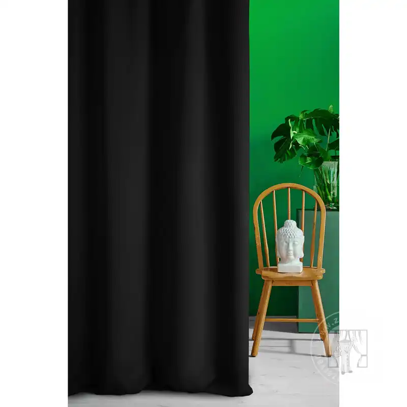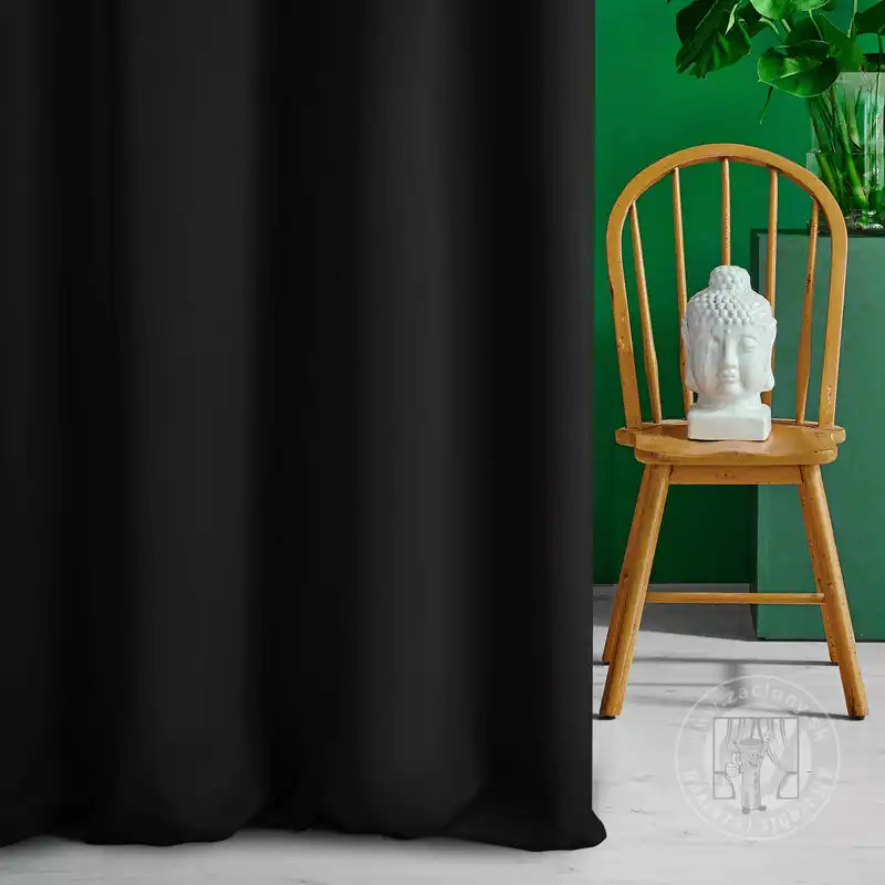 Závesy sú vyrobené z hladkej látky s jemným saténovým leskom, ktoré sa hodia do každého interiéru. Vnútorná vrstva látky je pretkaná čiernou niťou, vďaka čomu zatemňujú interiér až na 80%. Látka je obojstranná, preto je možné ju využiť aj na iných miestach ako sú okná.