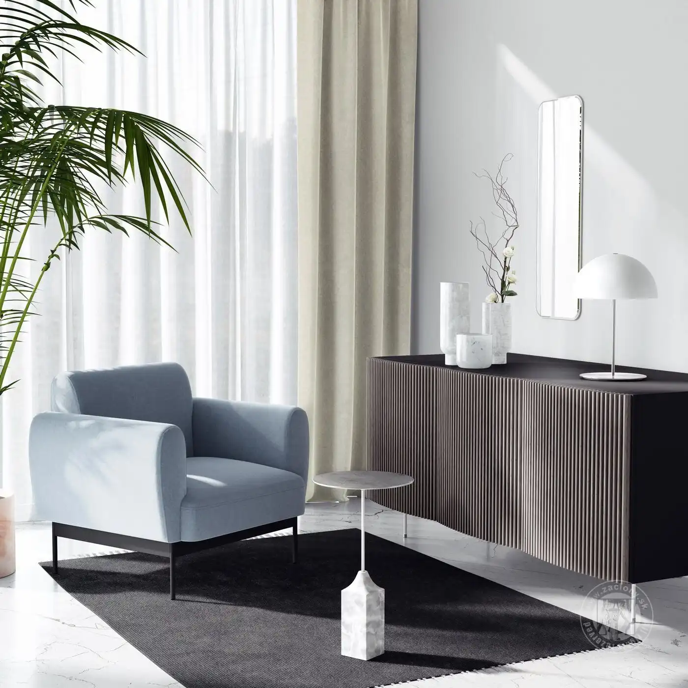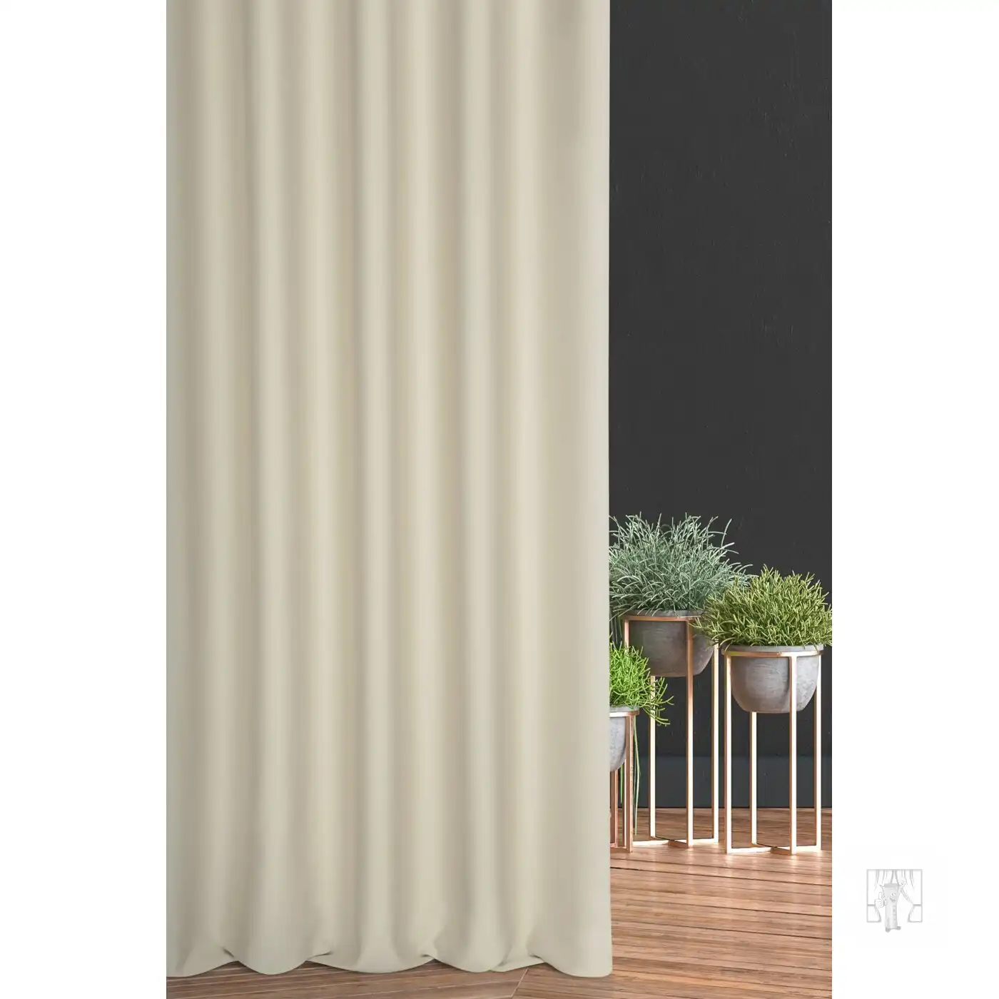 Závesy sú vyrobené z hladkej látky s jemným saténovým leskom, ktoré sa hodia do každého interiéru. Vnútorná vrstva látky je pretkaná čiernou niťou, vďaka čomu zatemňujú interiér až na 80%. Látka je obojstranná, preto je možné ju využiť aj na iných miestach ako sú okná.