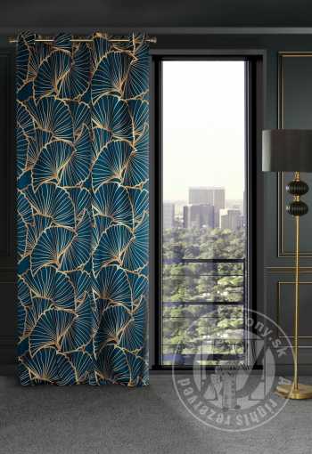 Záves MUSA3 na krúžkoch modrý s potlačou 140x250 cm