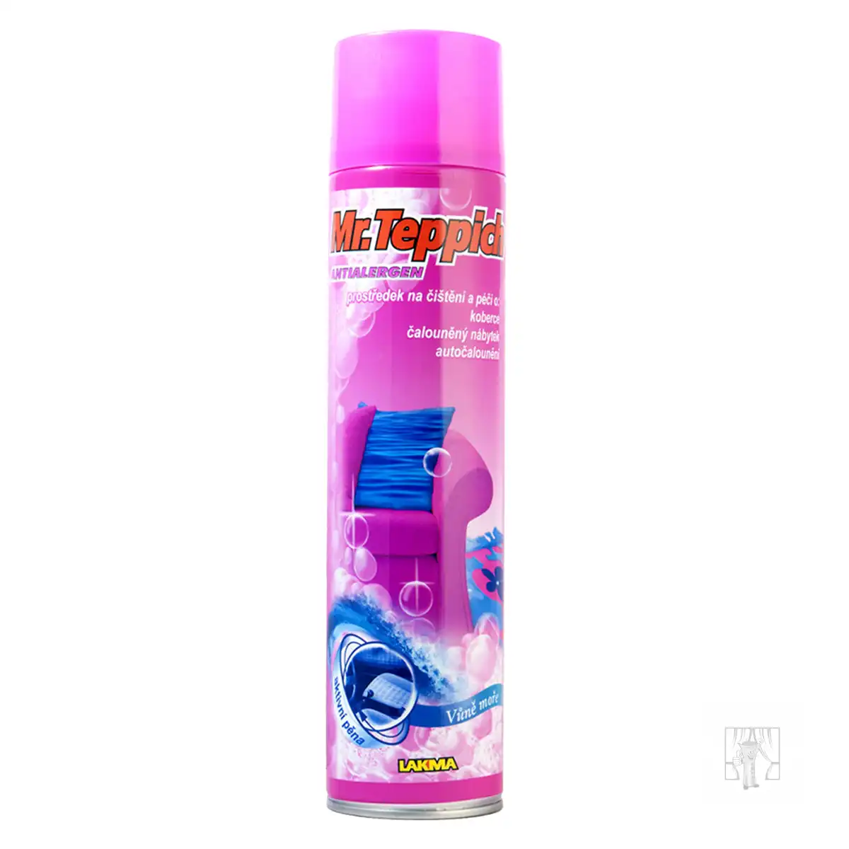 Antialergénna suchá pena určená na starostlivosť o koberce, čalúnený nábytok a autočalúnenie. Tento prípravok slúži predovšetkým na čistenie škvŕn, obnovenie pôvodnej farby a likvidáciu nepríjemných pachov. Vďaka antialergénnym zložkám dokonale odstraňuje alergény prachu a hubí baktérie a roztoče, ktoré sa v týchto látkach radi množia. Zanecháva príjemnú vôňu a chráni proti opätovnému znečisteniu.