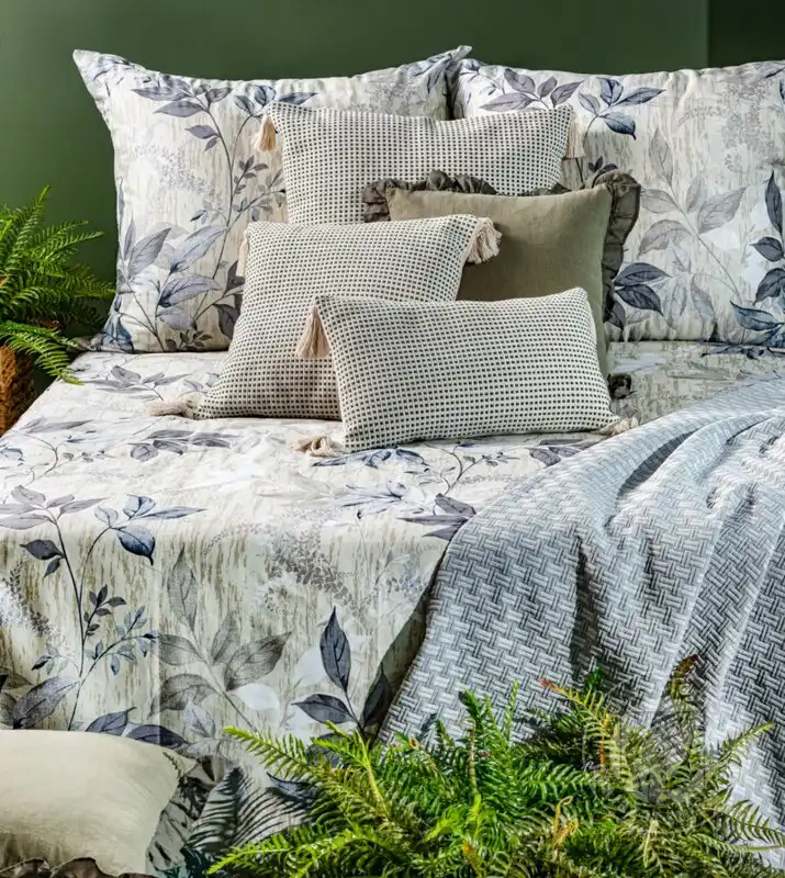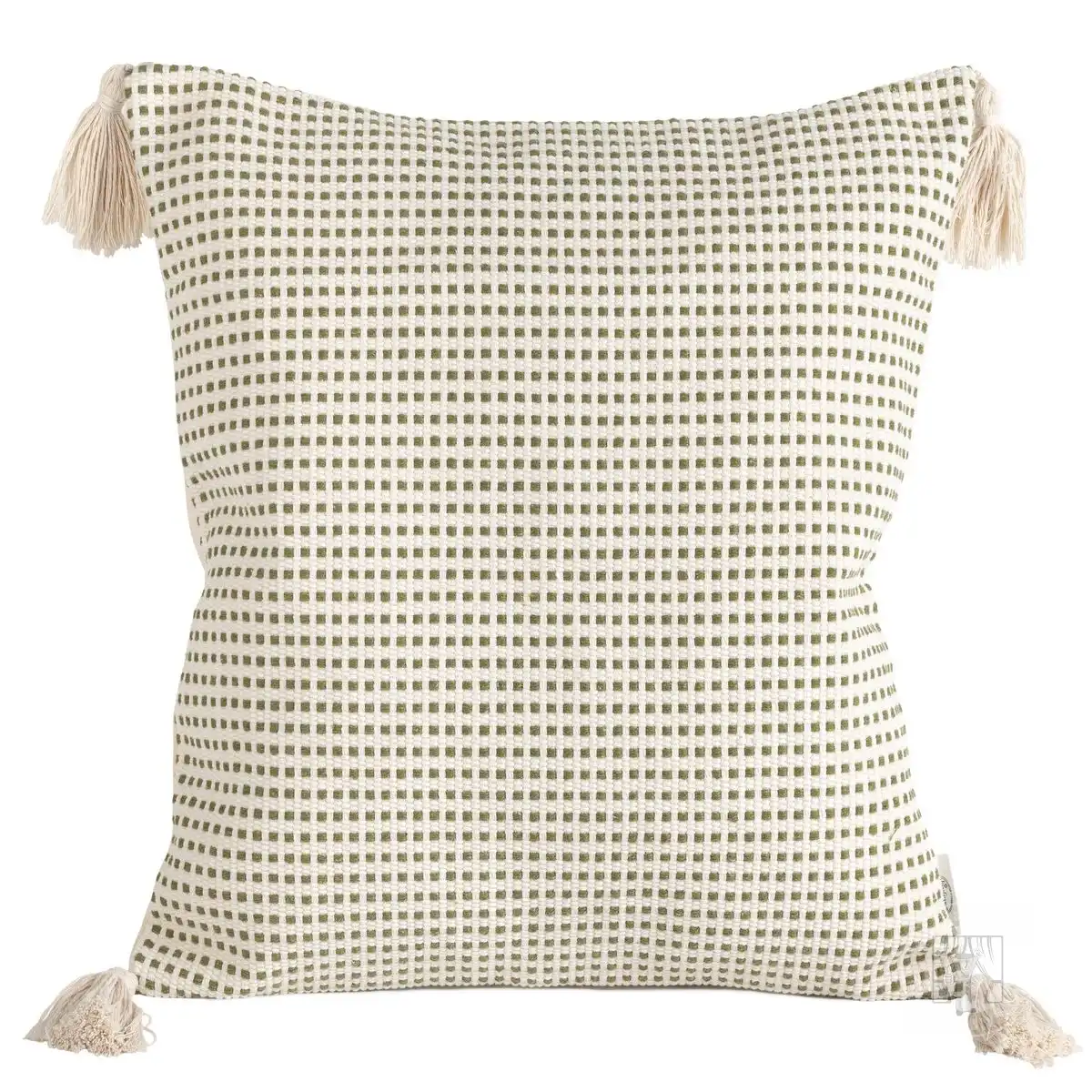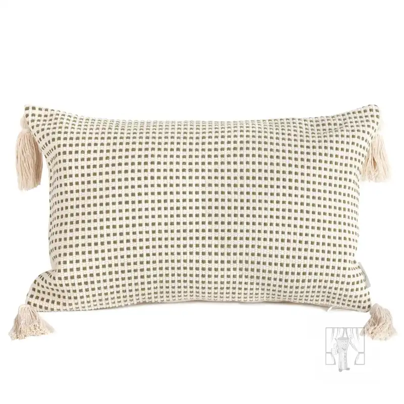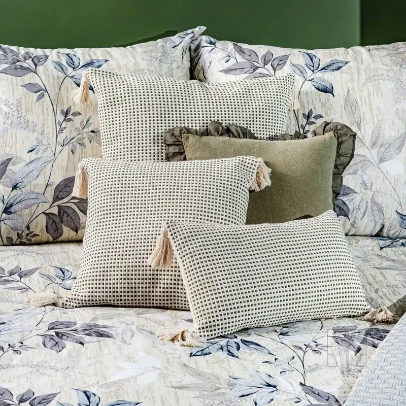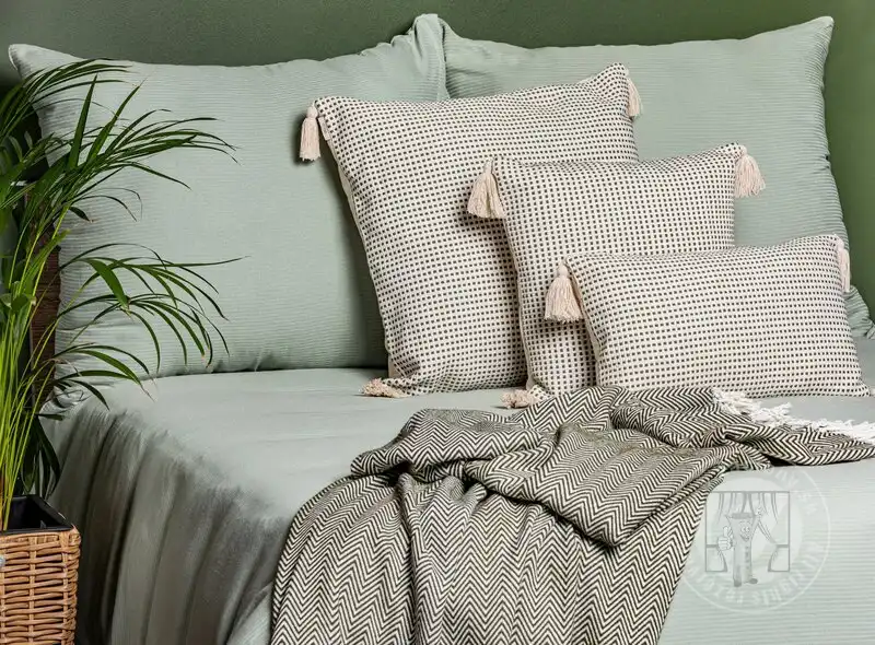 Obliečka na vankúš utkaná z hrubých bavlnených nití v jemnom žakárovom vzore je jedinečnou dekoráciou, ktorá do interiéru vnesie pokoj a sviežosť. Ozdobné strapce na rohoch obliečky na vankúš ju robia mimoriadne elegantnou. Doplnky v tlmených farbách v ekologickom štýle sú ideálne do módnych moderných interiérov, môžu zdobiť spálňu a uplatnia sa aj na terase alebo balkóne.