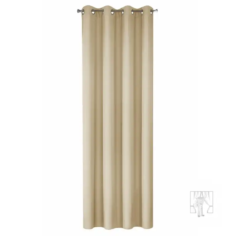 Hotový záves ušitý z hladkej matnej tkaniny v svetlohnedom odtieni zútulní priestor a vnesie do interiéru nadčasovosť. Záves je pripevnený pomocou kovových priechodiek, ktoré zabezpečujú rýchlu a bezproblémovú výmenu okennej dekorácie.