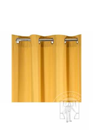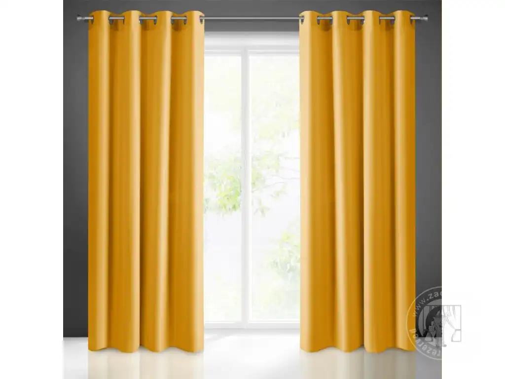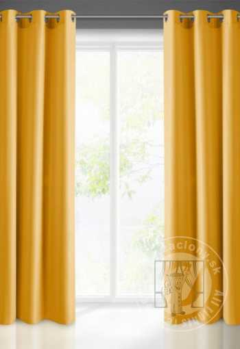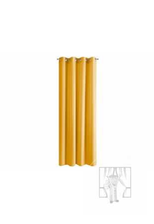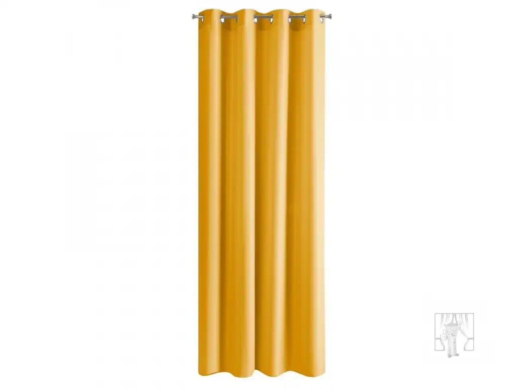 Hotový záves ušitý z hladkej matnej tkaniny v odtieni žltej zútulní priestor a vnesie do interiéru dobrú náladu. Záves je pripevnený pomocou kovových priechodiek, ktoré zabezpečujú rýchlu a bezproblémovú výmenu okennej dekorácie.
