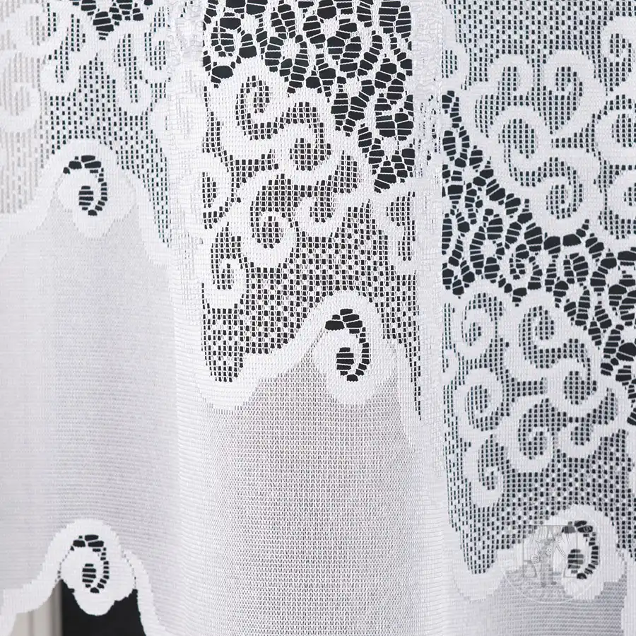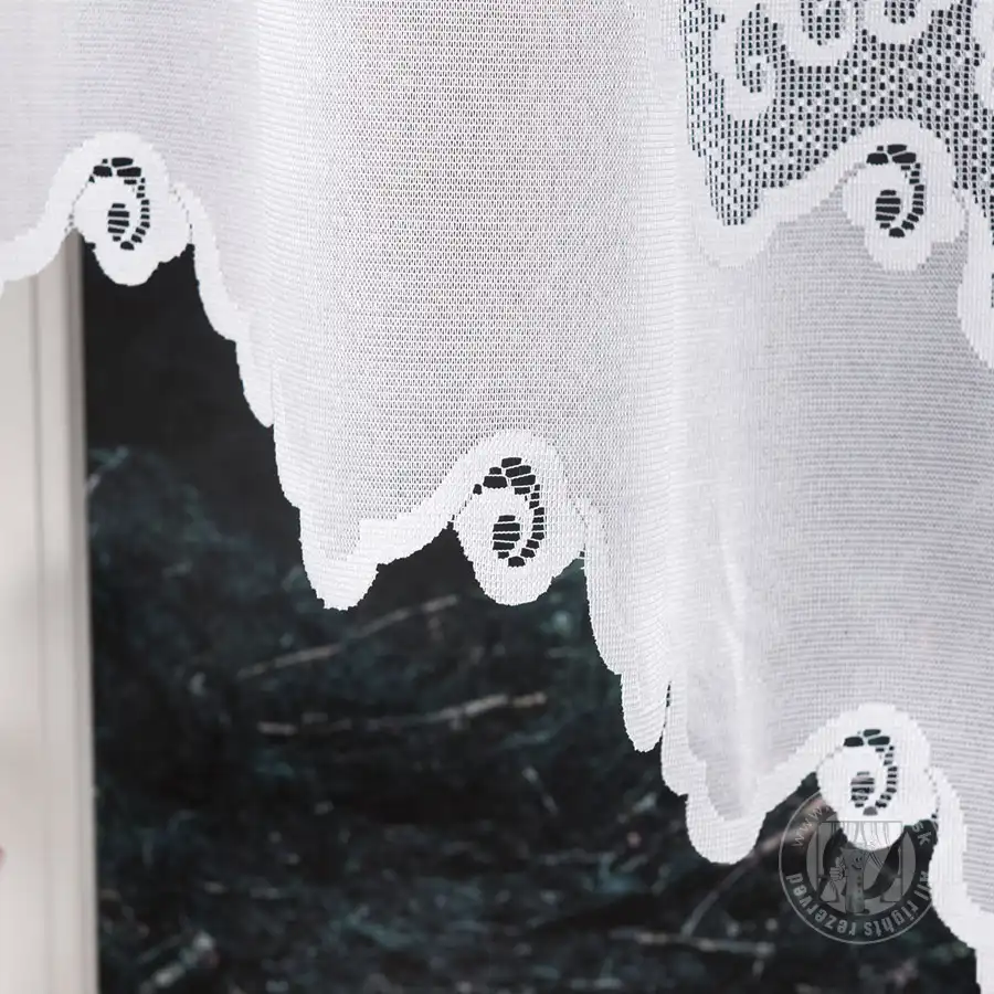 Oblúková záclona s elegantným vzorom sa hodí do klasických interiérov.
