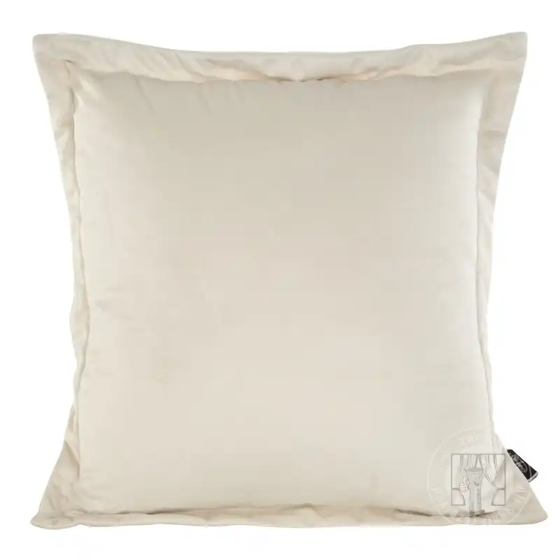 Elegantná krémová obliečka na vankúš vyrobená zo zamatovej látky. Obliečka je lemovaná jednoduchým volánom. Obliečky na vankúše majú zapínanie na zips.