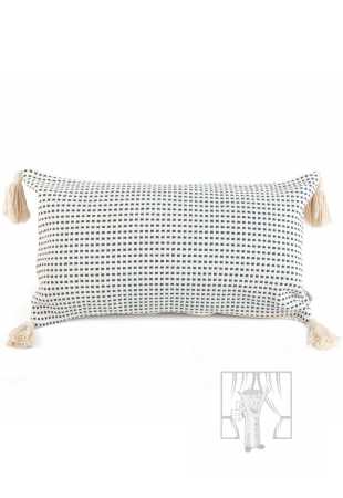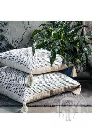 Táto obliečka na vankúš, tkaná z hrubých bavlnených nití v jemnom žakárovom vzore, je jedinečnou dekoráciou, ktorá prináša do vášho interiéru pokoj a sviežosť. Dekoratívne strapce zdobiace jej rohy dodávajú obliečke obzvlášť elegantný vzhľad.