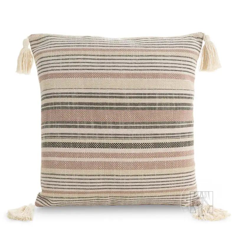 Obliečka na vankúš BOHO pruhovaná 45x45cm púdrová/sivá