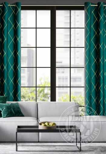 Mäkká zamatová tkanina, ktorá je pokrytá symetrickou výšivkou v podobe pravidelných kosoštvorcov, má jemný lesk. Praktické kovové krúžka znamenajú, že výmena dekorácie zaberie len krátku chvíľu. Hrubšia tkanina výborne izoluje slnečné svetlo, čím zabezpečuje príjemnú atmosféru v miestnosti. Ak ju zladíte s obliečkou na vankúš z rovnakej kolekcie, dosiahnete ucelený a atraktívny dizajn interiéru.