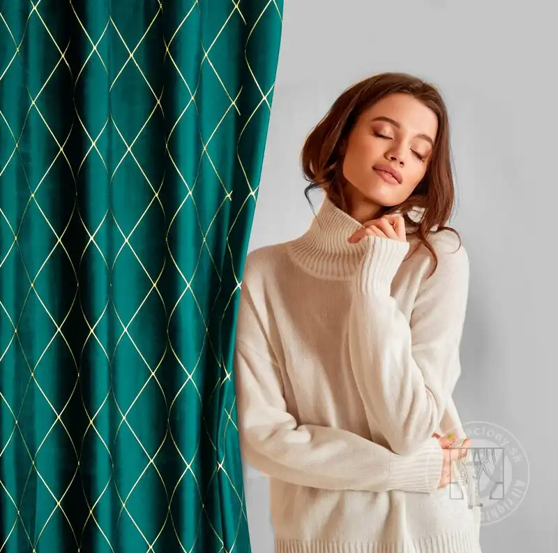 Štýlový záves z exkluzívnej kolekcie PIERRE CARDIN s výšivkou v tvare diamantu je elegantným doplnkom, ktorý sa hodí do moderných aj klasických interiérov. Záves je vyrobený z ušľachtilého francúzskeho zamatu a určite poteší priaznivcov módnych a elegantných doplnkov. Takýto malý akcent premení interiér obývacej izby a dokonale doplní zariadenie interiéru.