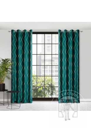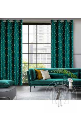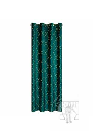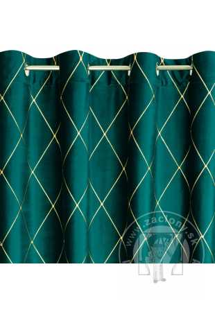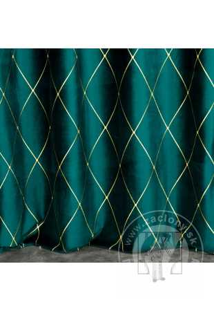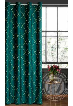 Záves PIERRE CARDIN MARGO na krúžkoch tmavý tyrkysový/zlatý 140x250cm