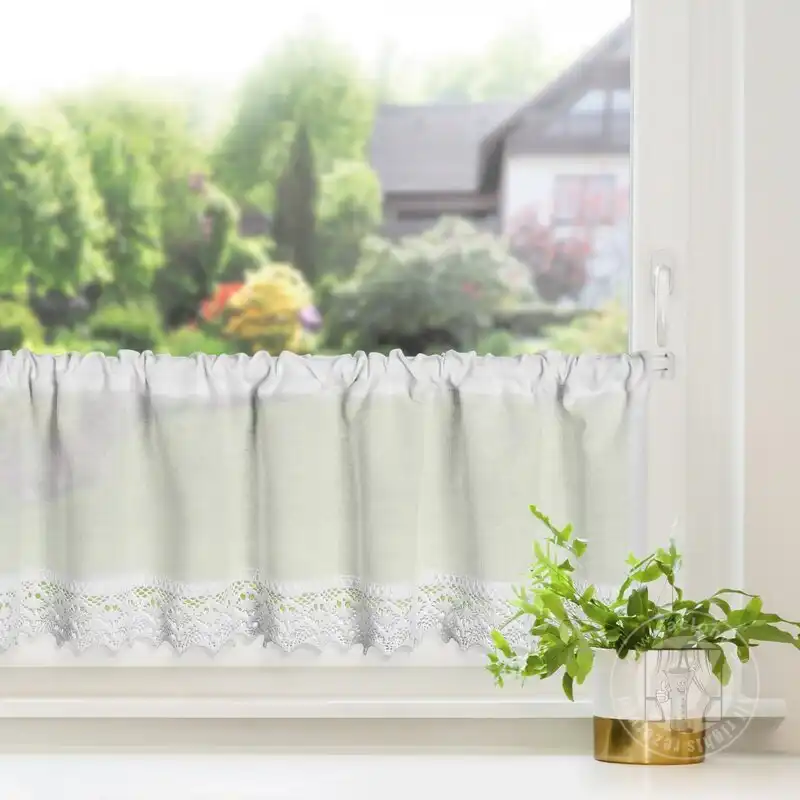 Milujete idylickú atmosféru rustikálnej kuchyne? Vitrážkovú záclonu z hladkej matnej tkaniny zdobí ažurová čipka, ktorá jej dodáva nevšedný pôvab.