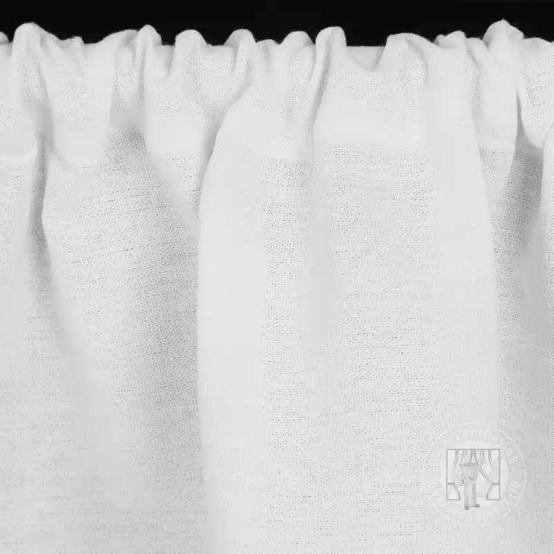 Záclona v bielej farbe z husto tkanej nepriehľadnej tkaniny sa ľahko udržiava a žehlí. Praktický tunel v hornom okraji závesu, uľahčuje jeho pretiahnutie cez záclonovú tyč. Vďaka rustikálnemu charakteru záclony je vhodná do štylizovanej kuchyne.