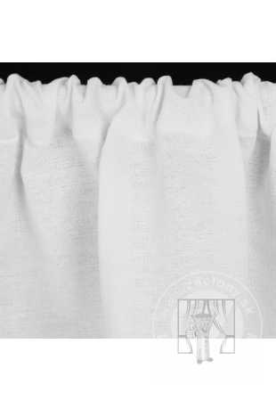 Záclona v bielej farbe z husto tkanej nepriehľadnej tkaniny sa ľahko udržiava a žehlí. Praktický tunel v hornom okraji závesu, uľahčuje jeho pretiahnutie cez záclonovú tyč. Vďaka rustikálnemu charakteru záclony je vhodná do štylizovanej kuchyne.