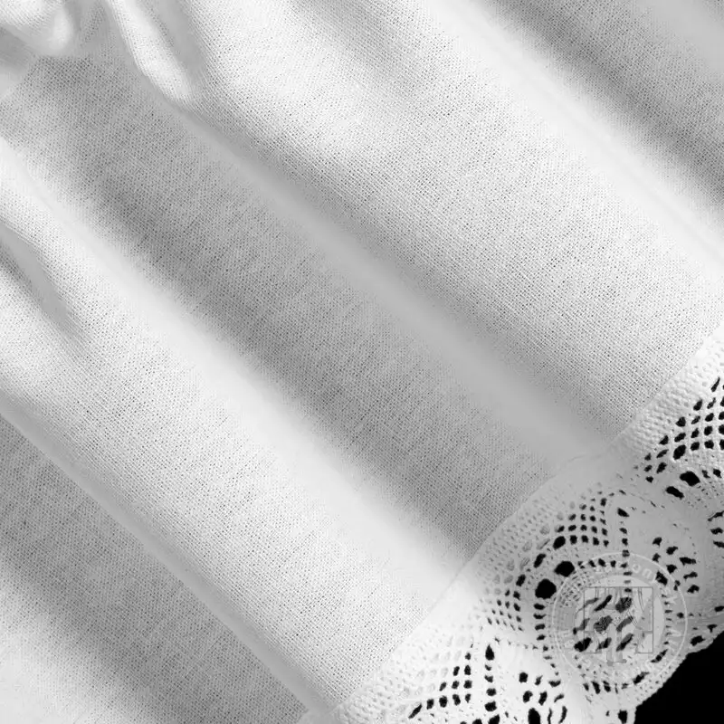 Záclona v bielej farbe z husto tkanej nepriehľadnej tkaniny sa ľahko udržiava a žehlí. Praktický tunel v hornom okraji závesu, uľahčuje jeho pretiahnutie cez záclonovú tyč. Vďaka rustikálnemu charakteru záclony je vhodná do štylizovanej kuchyne.