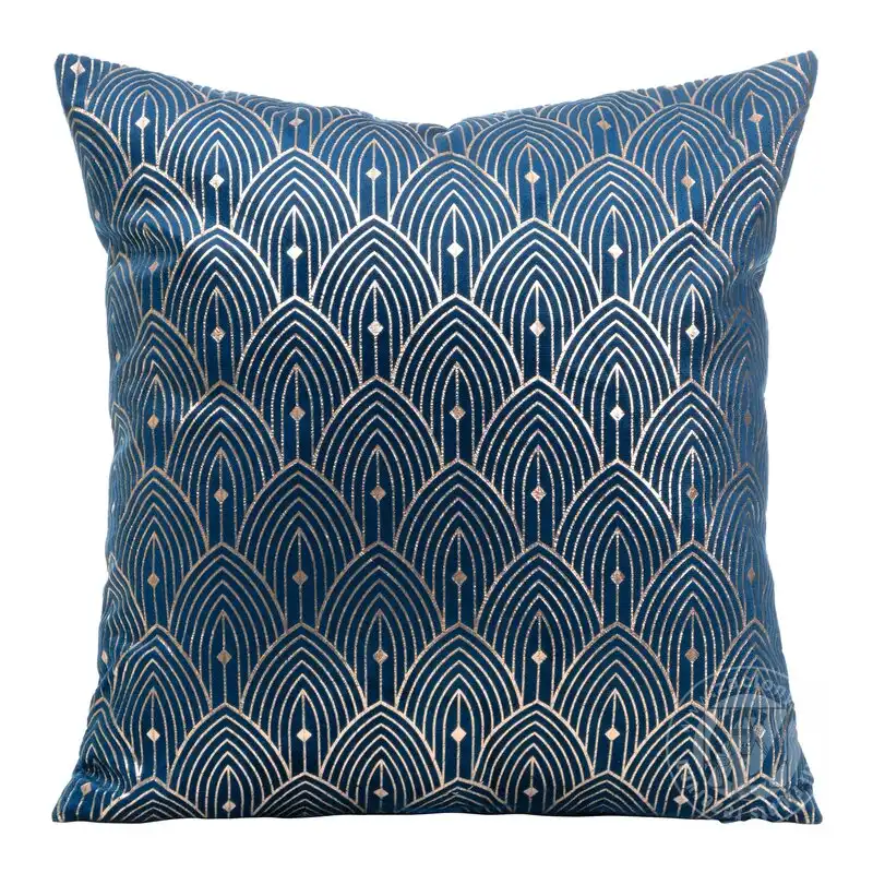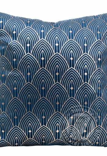 Luxusná tmavomodrá obliečka na vankúš sa vyznačuje originálnym dizajnom inšpirovaným štýlom Art Deco. Zlatá potlač na mäkkom zamate dokonale doplní moderný aj dobový interiér. Praktický zips všitý na jednej strane umožňuje jednoduchú zmenu dekorácie.
