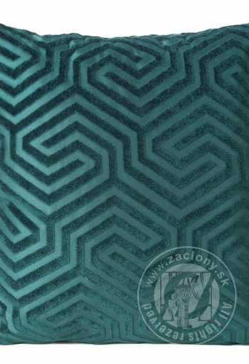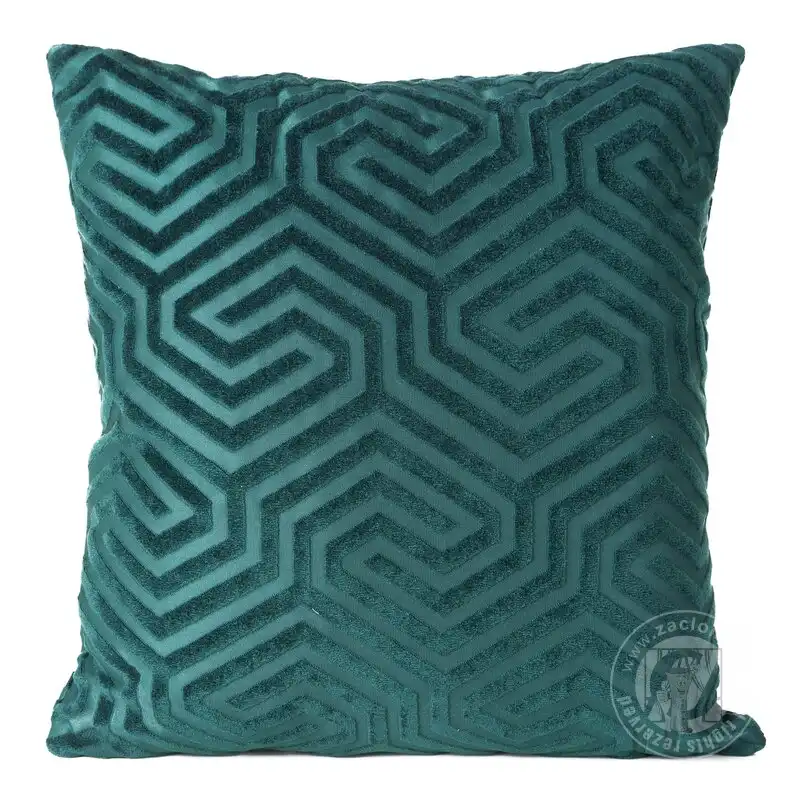 Tyrkysová dekoratívna obliečka na vankúš je vyrobená z hrubého zamatu so žakárovým vzorom. Geometrický vzor na látke bol vytvorený technikou tkania. Jemná mäkkosť, decentný lesk a precízna povrchová úprava robia z nej perfektný doplnok do každého moderného a elegantného interiéru. Praktický zips všitý na jednej strane umožňuje jednoduchú zmenu dekorácie.
