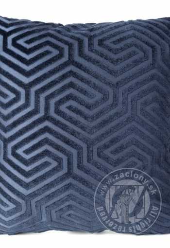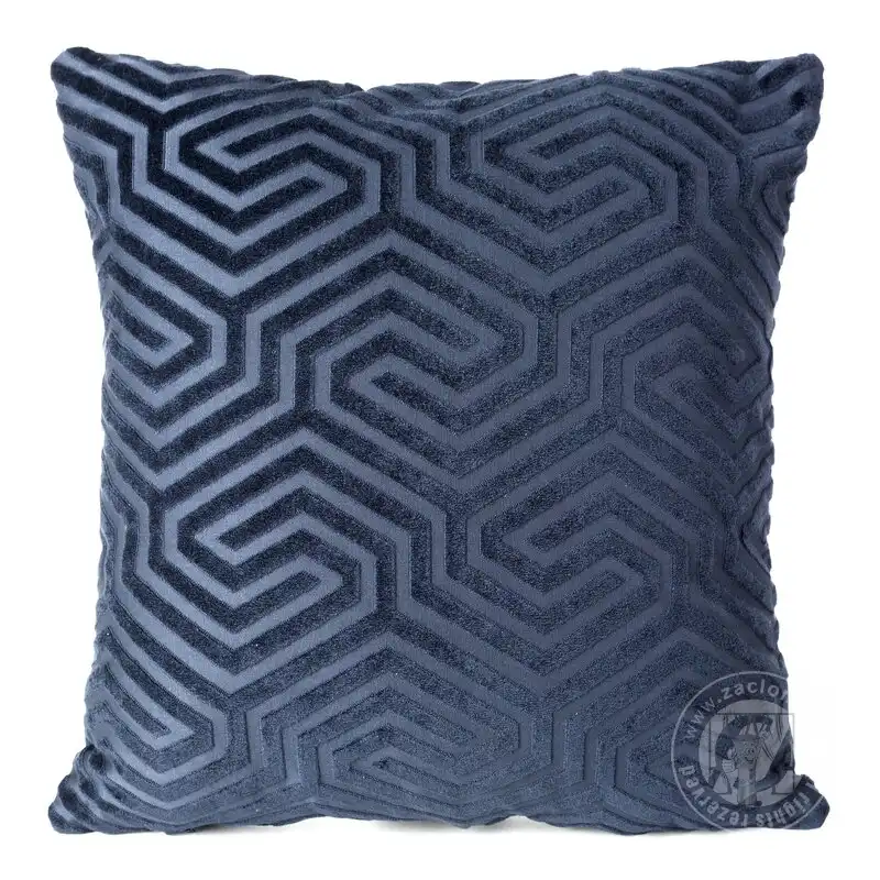 Tmavomodrá dekoratívna obliečka na vankúš je vyrobená z hrubého zamatu so žakárovým vzorom. Geometrický vzor na látke bol vytvorený technikou tkania. Jemná mäkkosť, decentný lesk a precízna povrchová úprava robia z nej perfektný doplnok do každého moderného a elegantného interiéru. Praktický zips všitý na jednej strane umožňuje jednoduchú zmenu dekorácie.