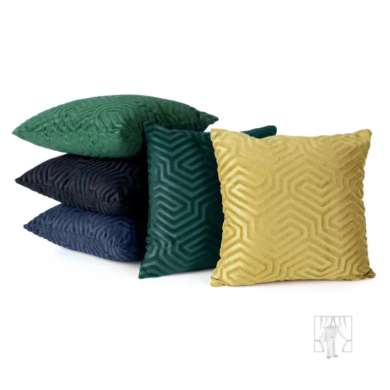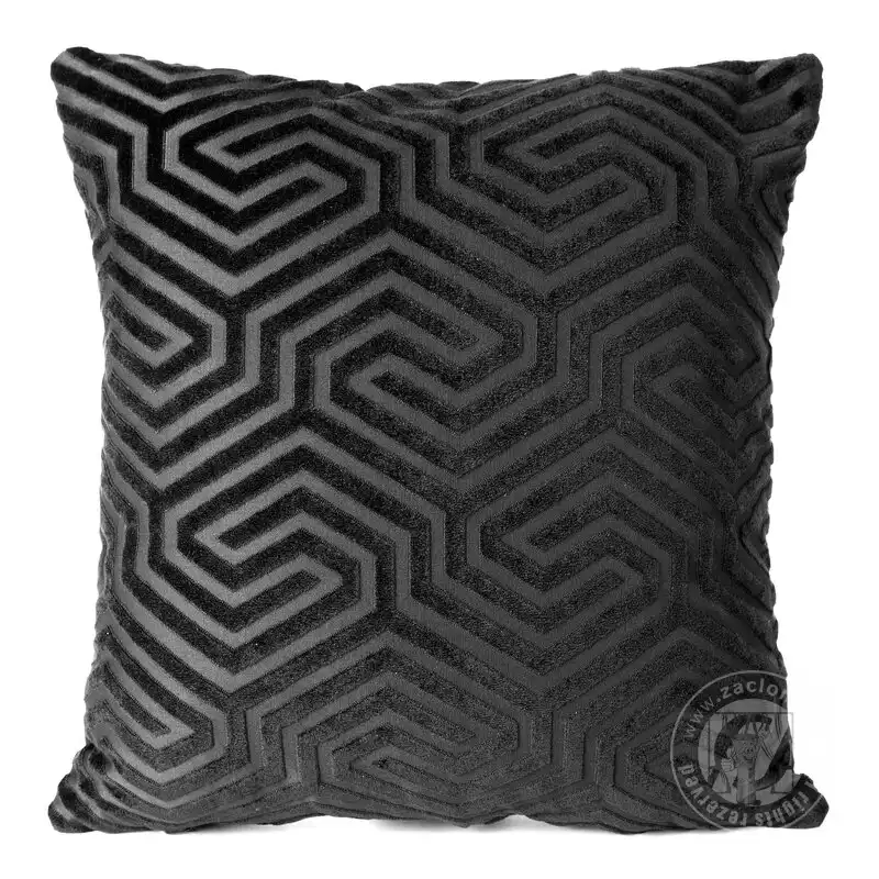 Čierna dekoratívna obliečka na vankúš je vyrobená z hrubého zamatu so žakárovým vzorom. Geometrický vzor na látke bol vytvorený technikou tkania. Jemná mäkkosť, decentný lesk a precízna povrchová úprava robia z nej perfektný doplnok do každého moderného a elegantného interiéru. Praktický zips všitý na jednej strane umožňuje jednoduchú zmenu dekorácie.
