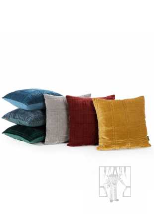 Exkluzívna obliečka na vankúš z mäkkej a na dotyk príjemnej zamatovej tkaniny s jemným leskom, ktorej povrch zdobí dvakrát prešitý geometrický motív usporiadaný do károvaného vzoru. Zips všitý do jednej zo strán umožňuje rýchlu a jednoduchú výmenu obliečky na vankúš. Jednotná farba opticky upokojuje a upratuje interiér, čím zvýrazňuje interiér štýlovej spálne.