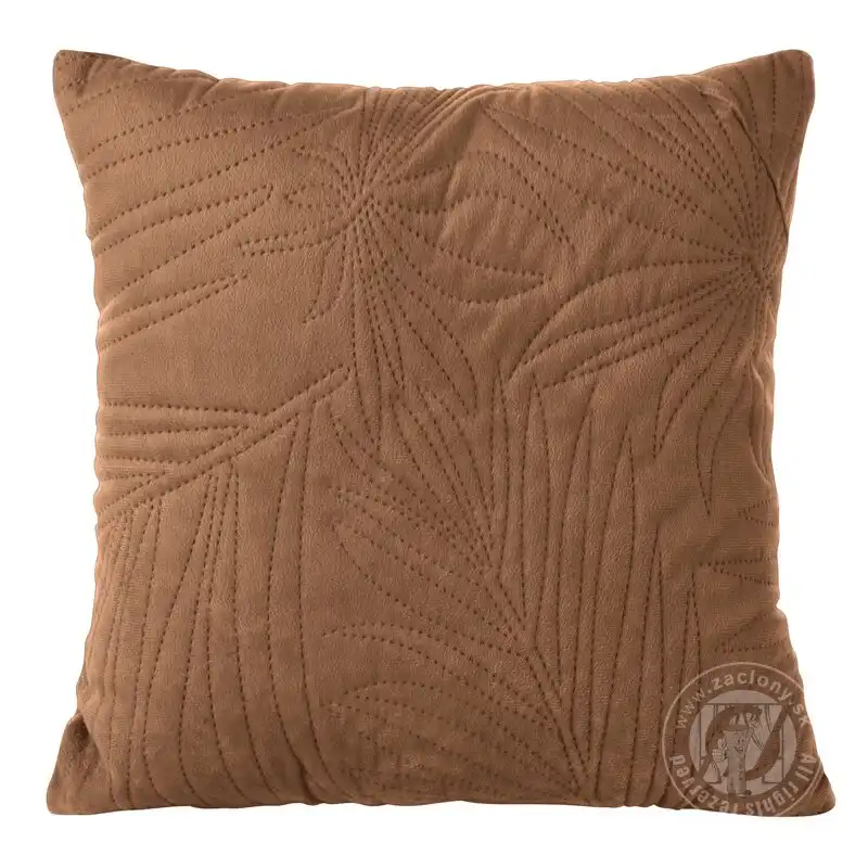 Tehlová dekoratívna obliečka na vankúš navrhnutá v modernom štýle, vyrobená z mäkkého a príjemného zamatu a zdobená prešívaním s palmovými listami. Zips všitý na jednej strane umožňuje jednoduchú zmenu dekorácie.