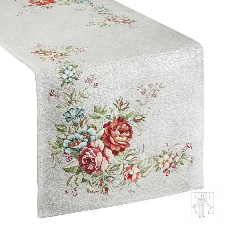 Behúň navrhnutý z hrubej gobelínovej tkaniny s mäkkou ženilkovou niťou a zdobený kvetinovým vzorom je dekoráciou pripomínajúcou vintage štýl. Hrubšia žakárová tkanina zaručuje krásny efekt a vzor dosiahnutý technikou tkania spôsobuje, že obrus vyzerá krásne v interiéri v rustikálnom štýle aj v romantickej štylizácii.