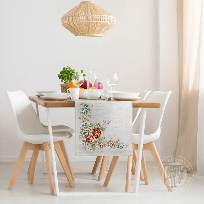 Gobelínový obrus POP so ženilkovou niťou 40x100cm popolavý/kvetinový