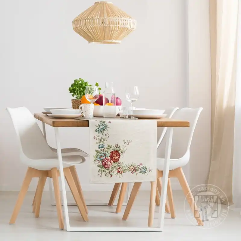 Gobelínový obrus NAT so ženilkovou niťou 40x100cm naturálny/kvetinový