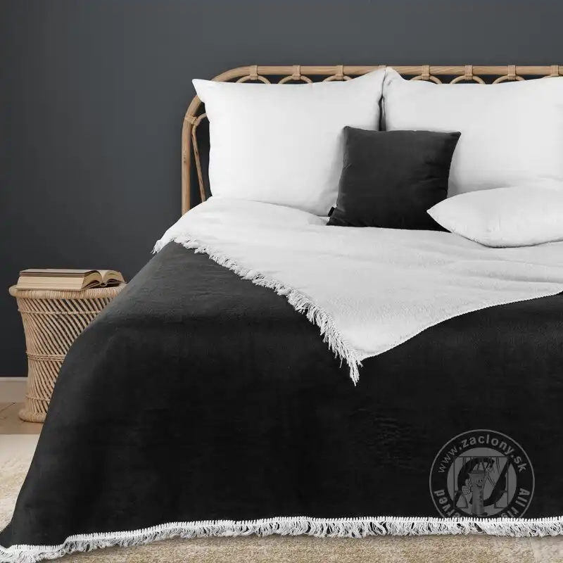 Čierna deka AKRYL je vyrobená z mäkkej, zamatovej látky. Z oboch strán je zakončená jemnými strapcami a dodá každej spálni charakter. Dve rôzne farby na oboch stranách vám umožňujú zmeniť usporiadanie spálne podľa Vášho želania.