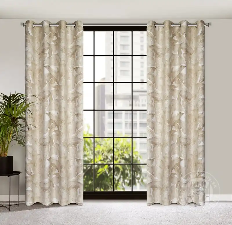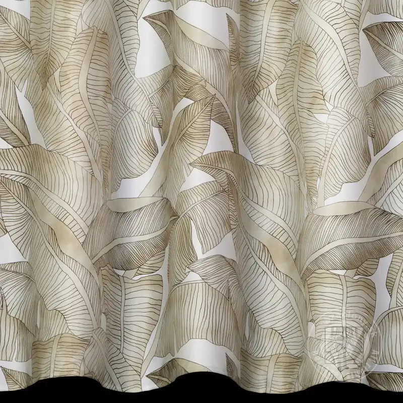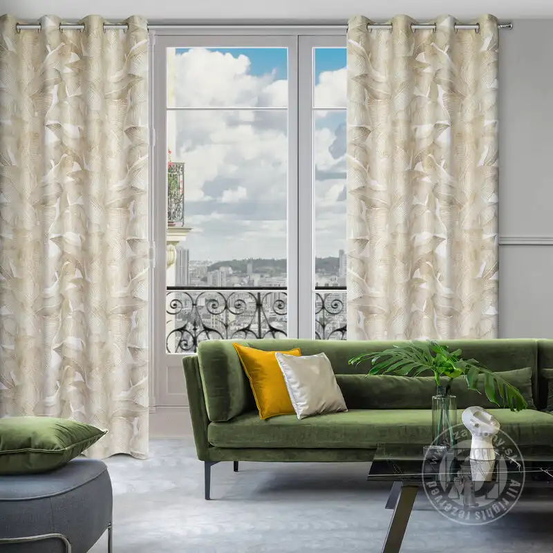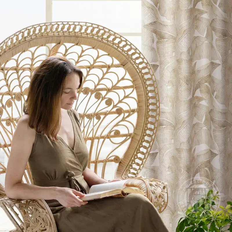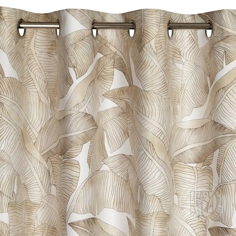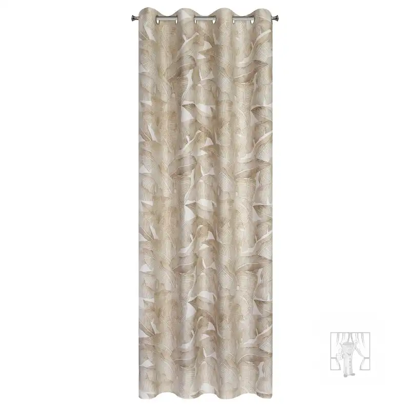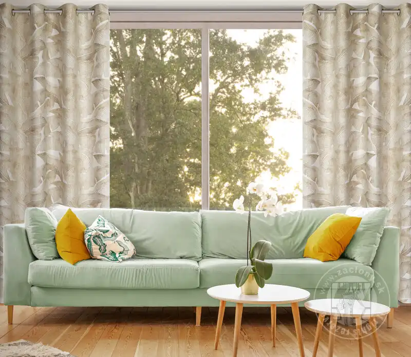 Zatemňovací záves SAMIRA, vyrobený zo zatemňovacej tkaniny príjemnej na dotyk a zdobený potlačou banánových listov, osloví priaznivcov moderných dekorácií. Obzvlášť dobre sa bude hodiť do aranžmánov v botanickom štýle. Okrem estetických kvalít má záves aj praktické vlastnosti - vďaka svojim tieniacim vlastnostiam zatemňovací záves chráni interiér pred nadmerným slnečným žiarením. Praktické očká v hornej časti látky zaručujú rýchlu a bezproblémovú výmenu okennej dekorácie a uľahčujú usporiadanie závesu do symetrických vĺn.
