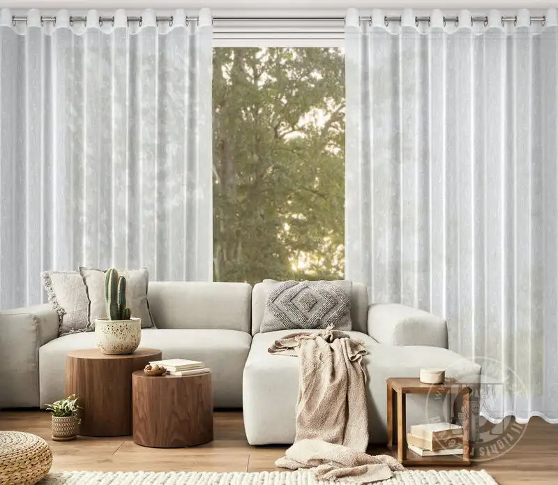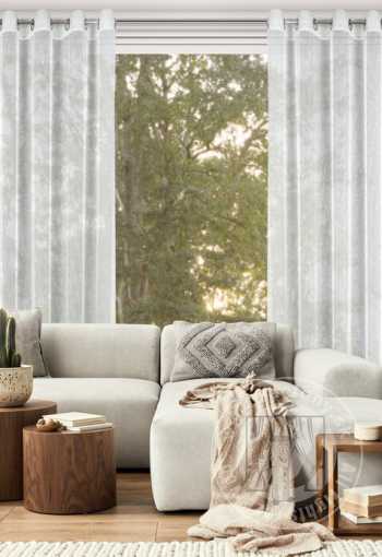 Záclona KELLY na krúžkoch biela so striebornou niťou 300x250cm