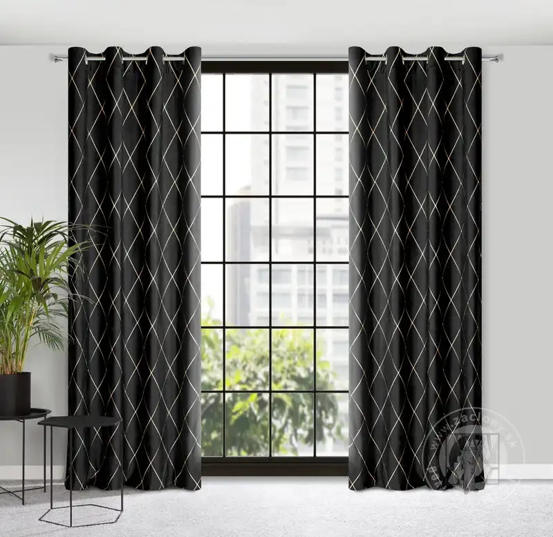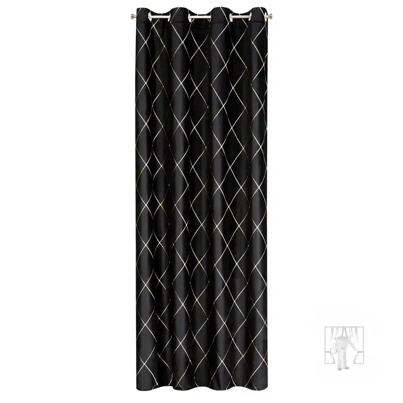 Mäkká zamatová tkanina, ktorá je pokrytá symetrickou výšivkou v podobe pravidelných kosoštvorcov, má jemný lesk. Praktické kovové krúžka znamenajú, že výmena dekorácie zaberie len krátku chvíľu. Hrubšia tkanina výborne izoluje slnečné svetlo, čím zabezpečuje príjemnú atmosféru v miestnosti. Ak ju zladíte s obliečkou na vankúš z rovnakej kolekcie, dosiahnete ucelený a atraktívny dizajn interiéru.