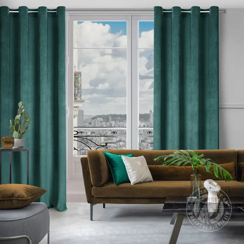 Záves z mäkkého a na dotyk príjemného zamatu s jemným reliéfnym vzorom. Hrubšia tkanina zakrýva okno, takže chráni váš interiér pred nadmerným svetlom a zabezpečuje príjemnú klímu v miestnosti. Výhodou látky je, že je mäkká a príjemná na dotyk, vďaka čomu vyzerá v okne krásne jemne splývajúca zo záclonovej tyče.