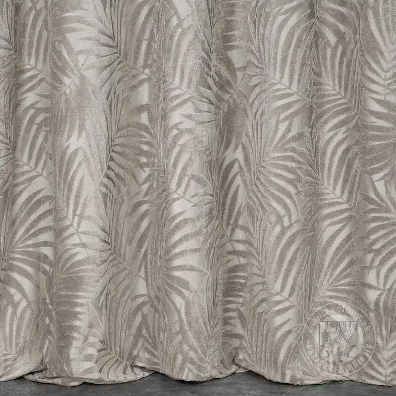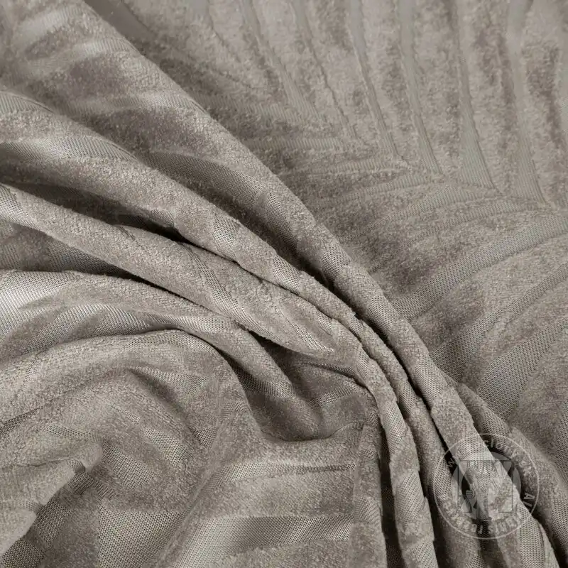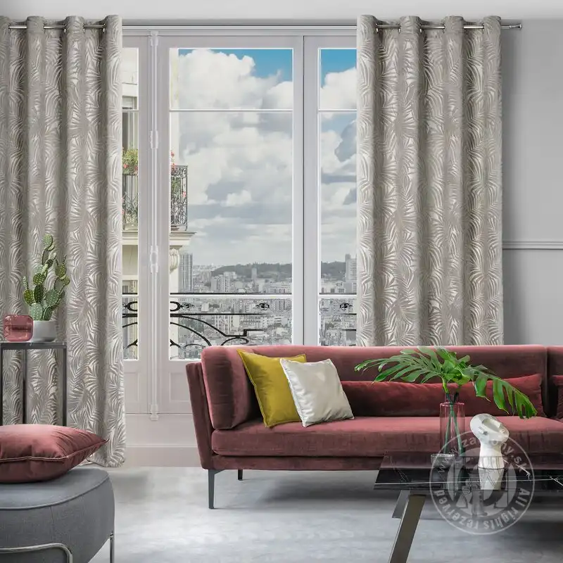 Mäkké zamatové tkaniny jemne a elegantne dopĺňajú dizajn interiéru a zdôrazňujú jeho štýl. Výrazný jednofarebný záves z mäkkého zamatu upúta pozornosť vďaka reliéfnemu vzoru, ktorý pokrýva celý jeho povrch.
