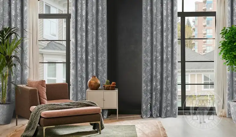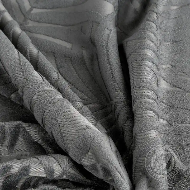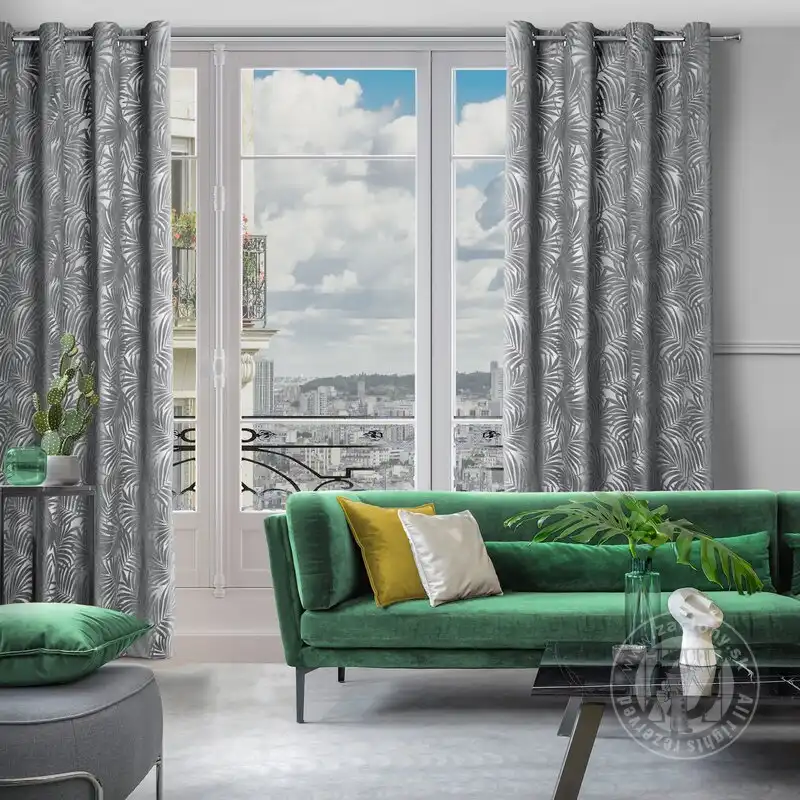 Mäkké zamatové tkaniny jemne a elegantne dopĺňajú dizajn interiéru a zdôrazňujú jeho štýl. Výrazný jednofarebný záves z mäkkého zamatu upúta pozornosť vďaka reliéfnemu vzoru, ktorý pokrýva celý jeho povrch.
