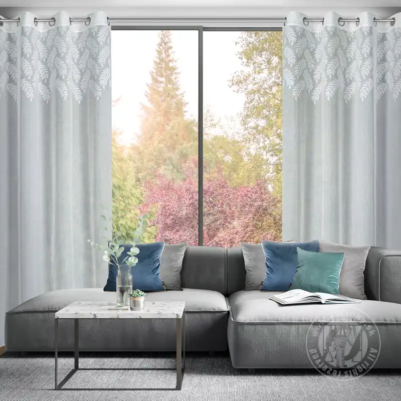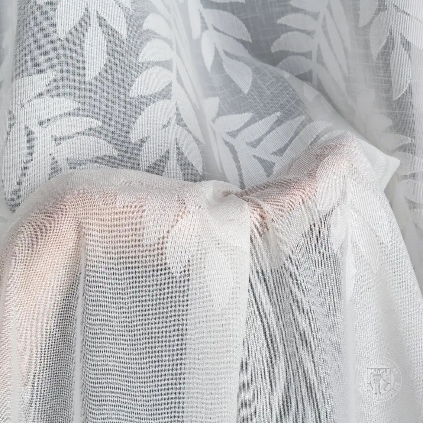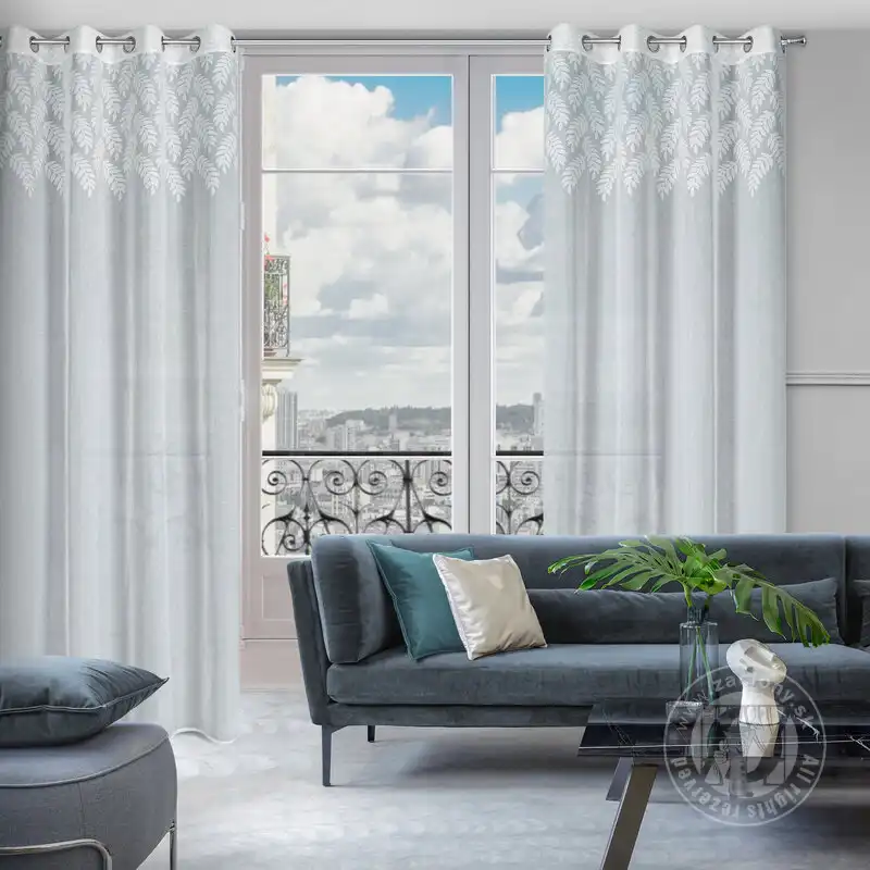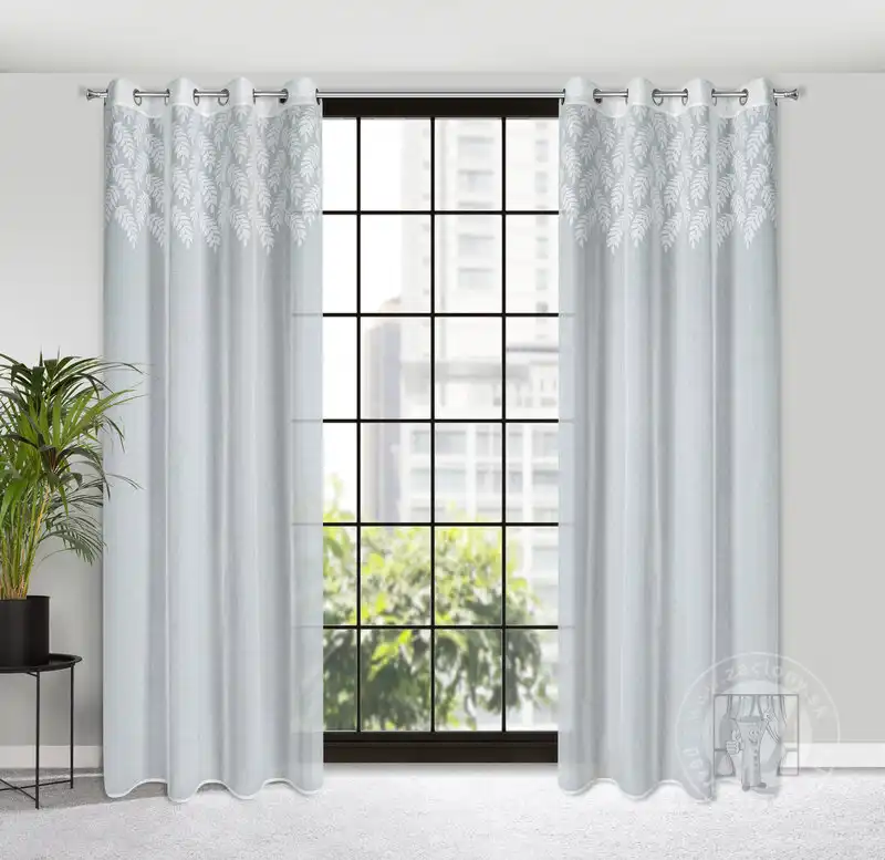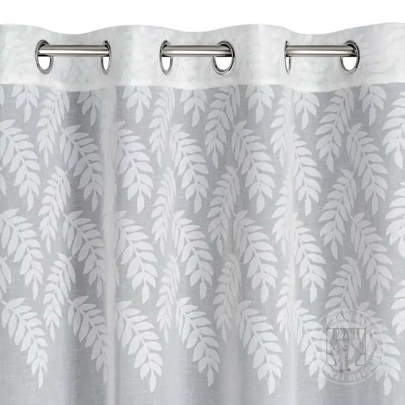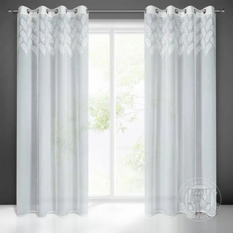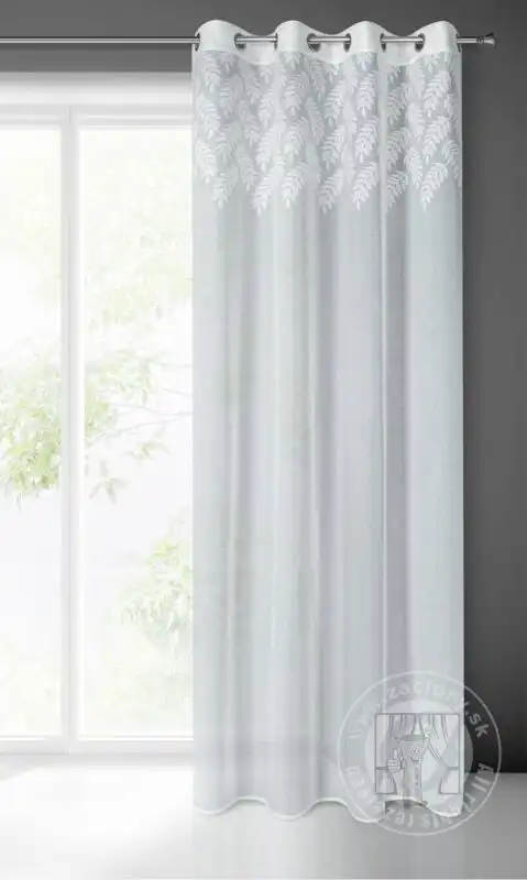 Záclona ANET na krúžkoch biela so vzorom listov 140x250cm