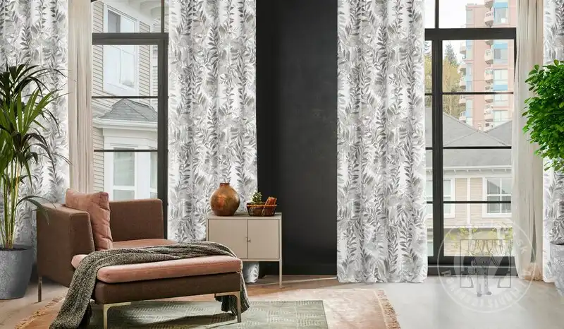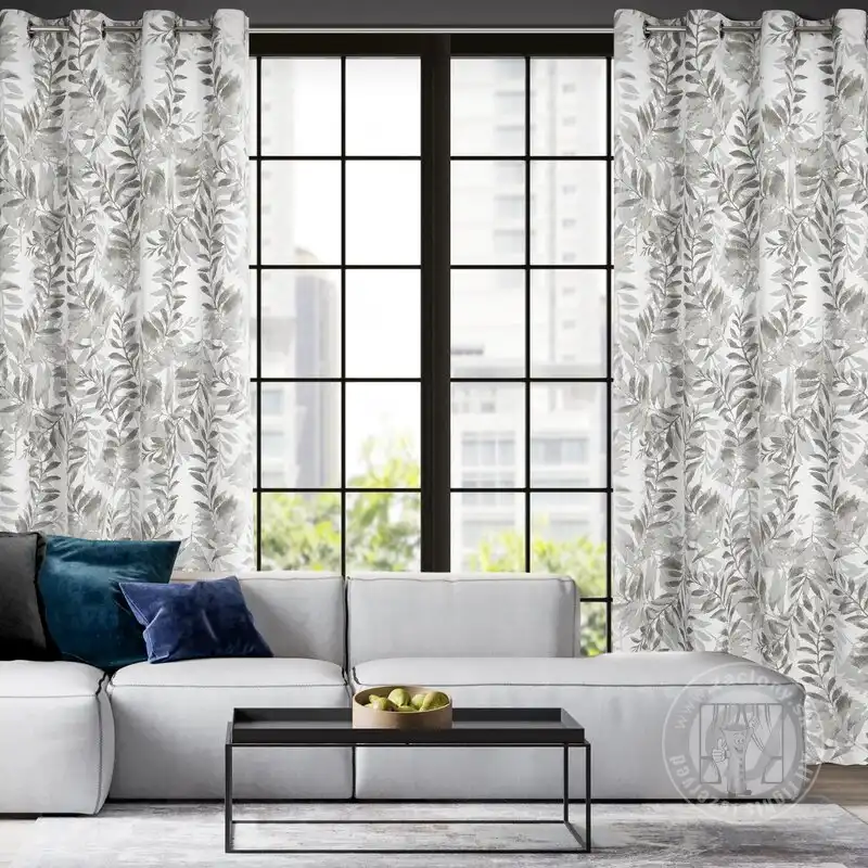Záves z jemnej polopriehľadnej tkaniny je zdobený jemným motívom vetvičiek, ktoré vytvárajú nezvyčajný trojrozmerný efekt. Farebná potlač sa prelína so žakárovým vzorom, vďaka čomu je záves dynamický a výnimočný.