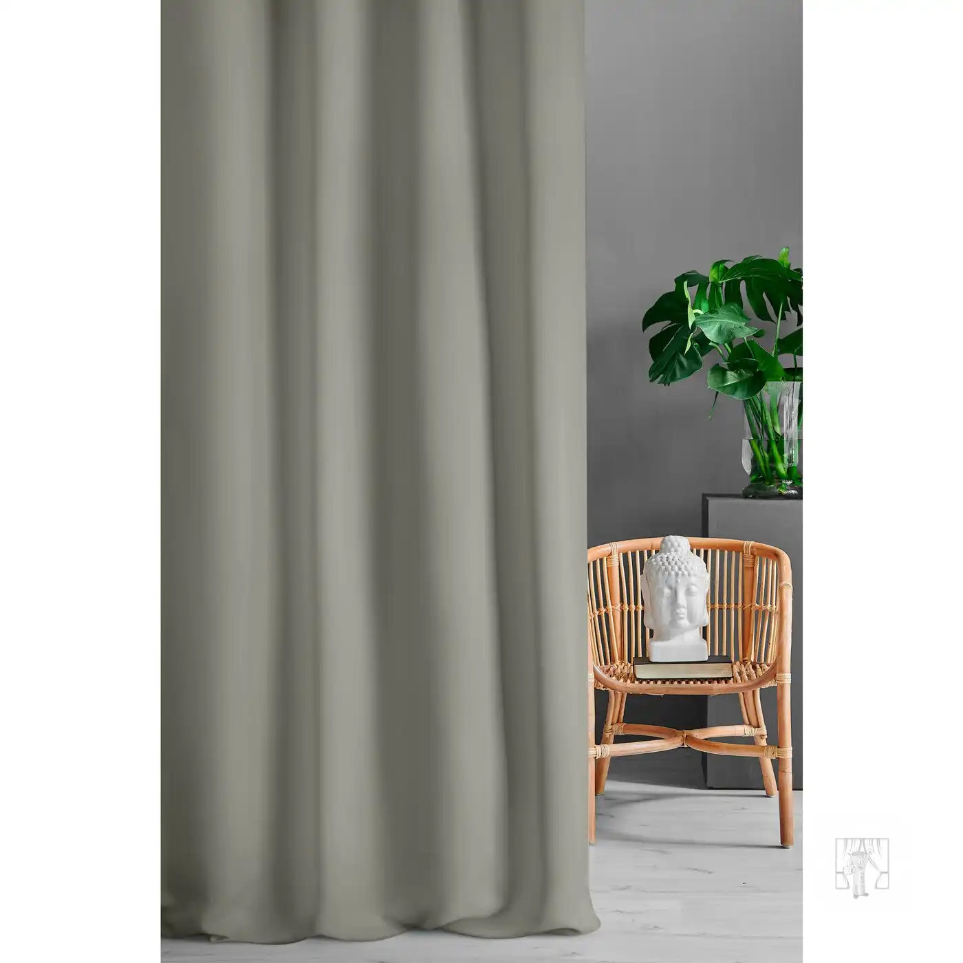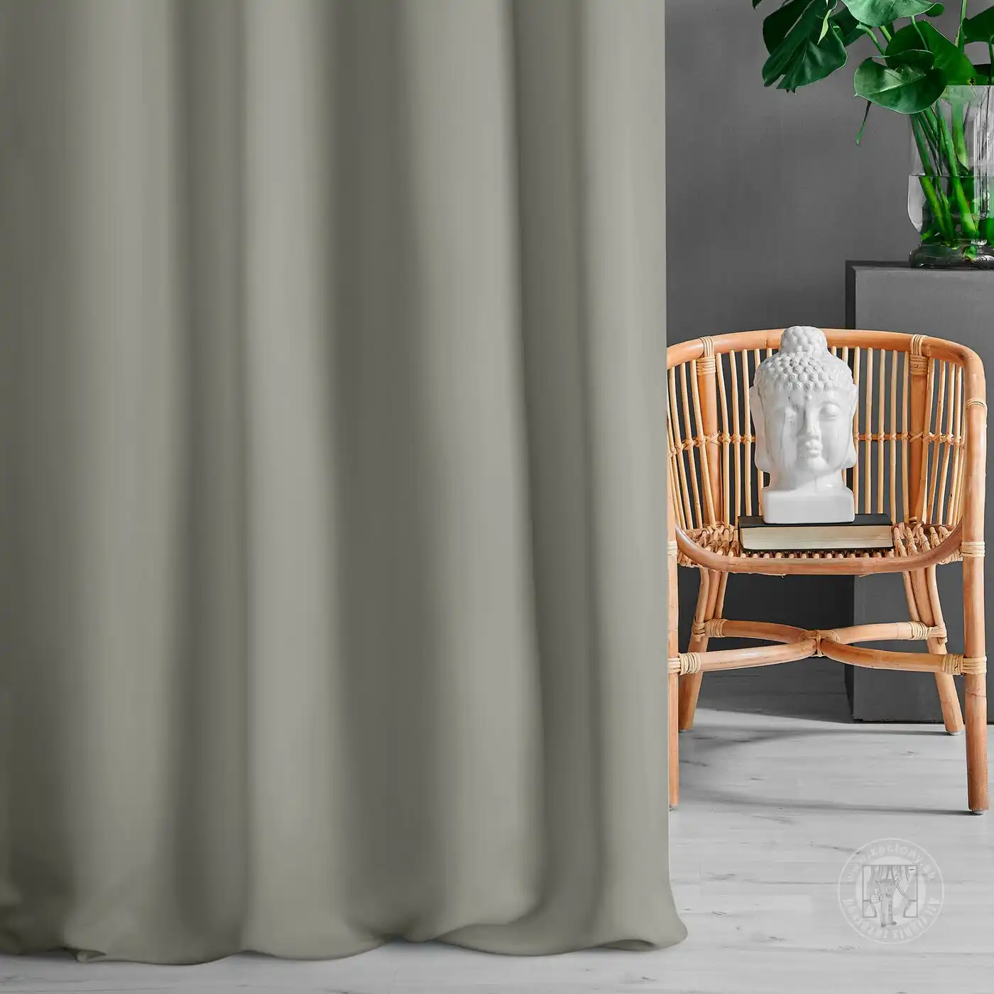 Závesy sú vyrobené z hladkej látky s jemným saténovým leskom, ktoré sa hodia do každého interiéru. Vnútorná vrstva látky je pretkaná čiernou niťou, vďaka čomu zatemňujú interiér až na 80%. Látka je obojstranná, preto je možné ju využiť aj na iných miestach ako sú okná.