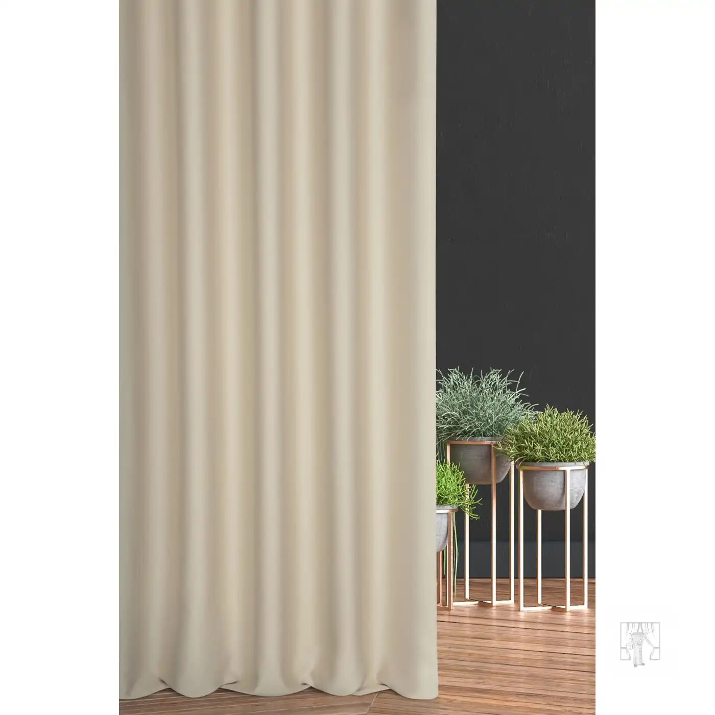 Závesy sú vyrobené z hladkej látky s jemným saténovým leskom, ktoré sa hodia do každého interiéru. Vnútorná vrstva látky je pretkaná čiernou niťou, vďaka čomu zatemňujú interiér až na 80%. Látka je obojstranná, preto je možné ju využiť aj na iných miestach ako sú okná.