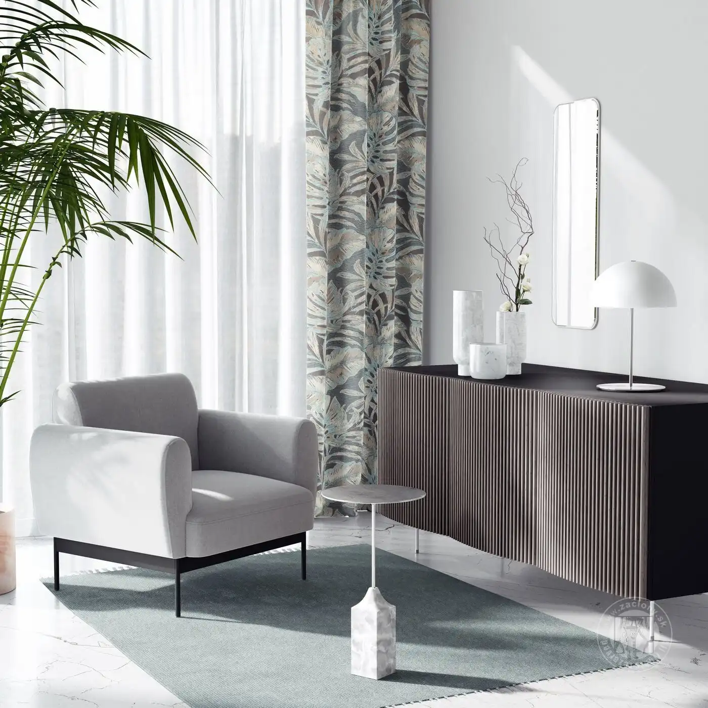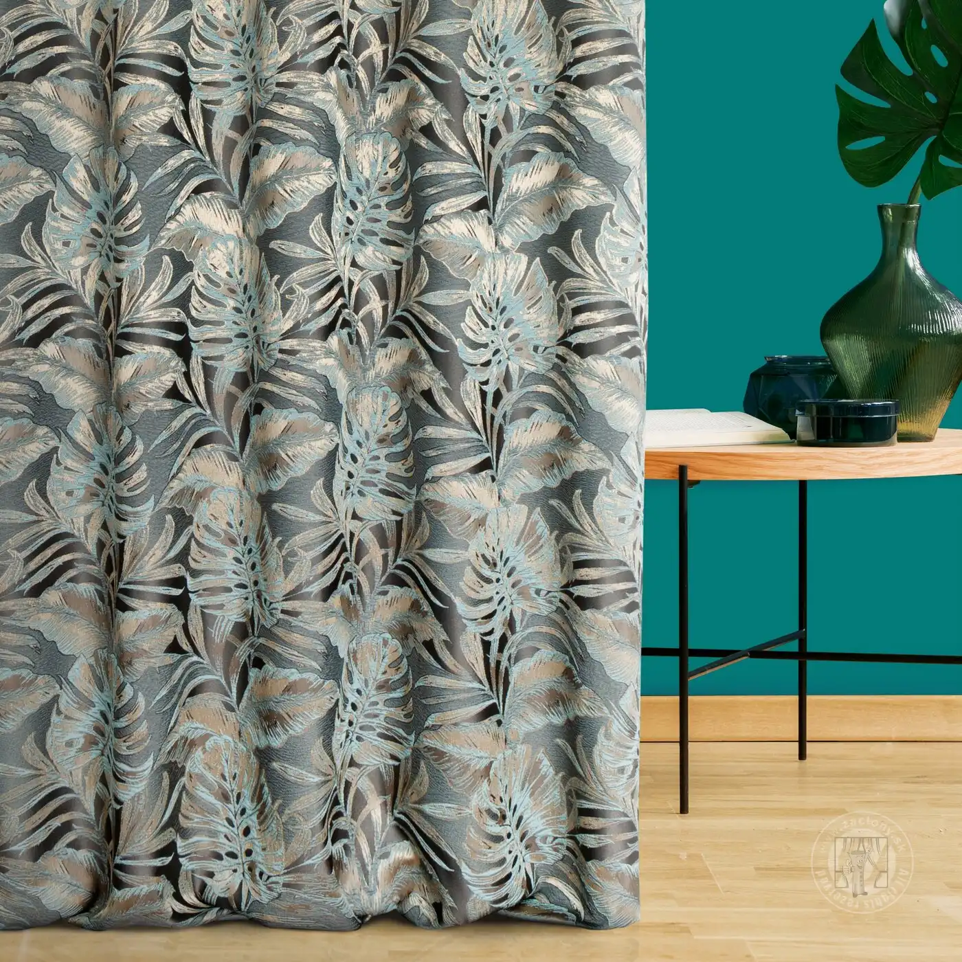 Prémiová husto tkaná žakárová látka s potlačou listov sa skvele hodí do moderných aj klasických interiérov. Mierny lesk pôsobí luxusne a podčiarkne každý priestor.