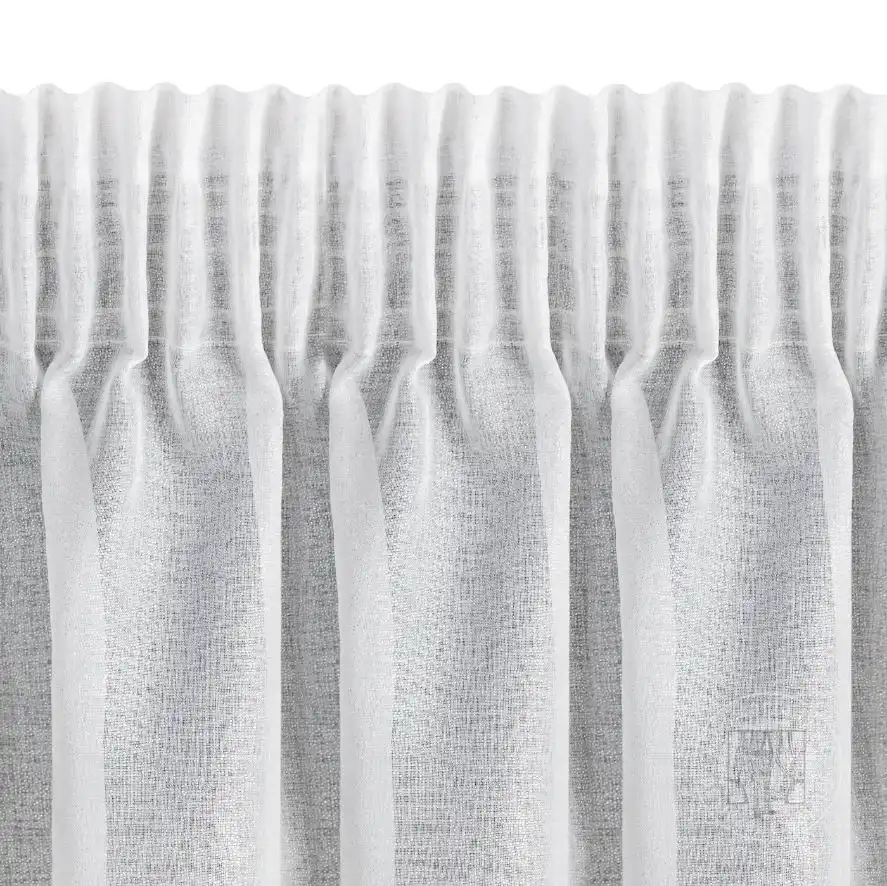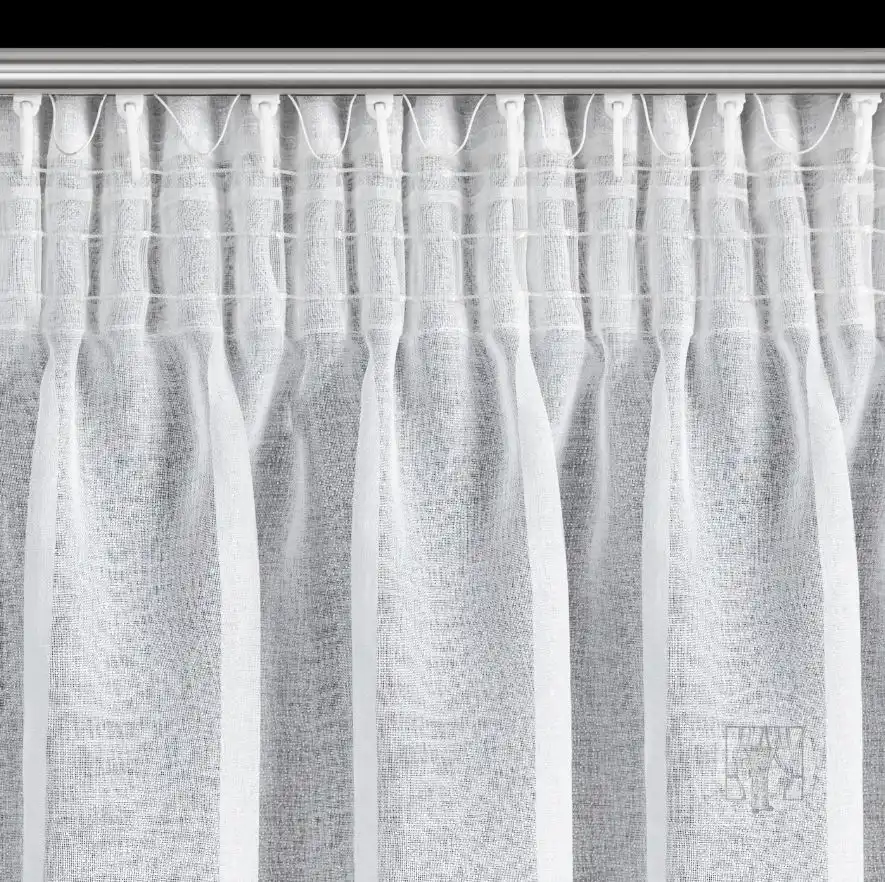 Vďaka univerzálnej riasiacej páske s funkciou tunela môžete záclonu zavesiť na garnižu pomocou háčikov, štipcov alebo jednoduchým pretiahnutím cez záclonovú tyč.
