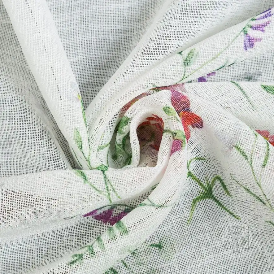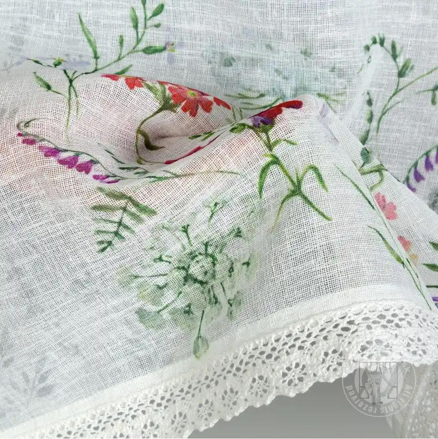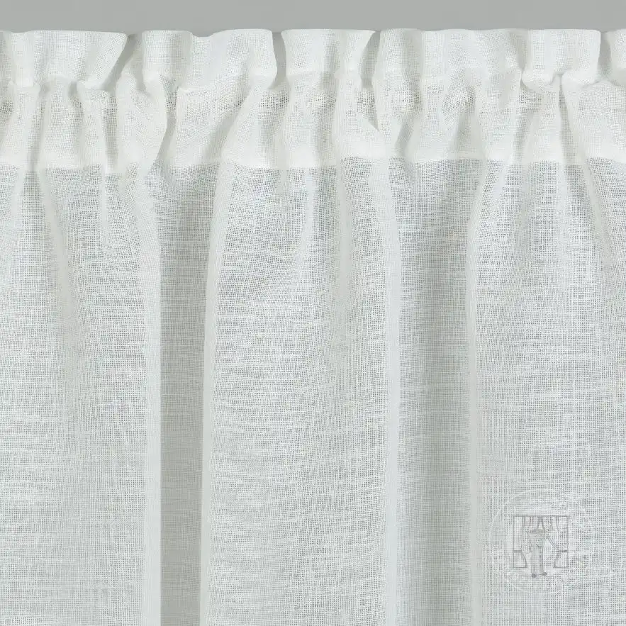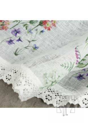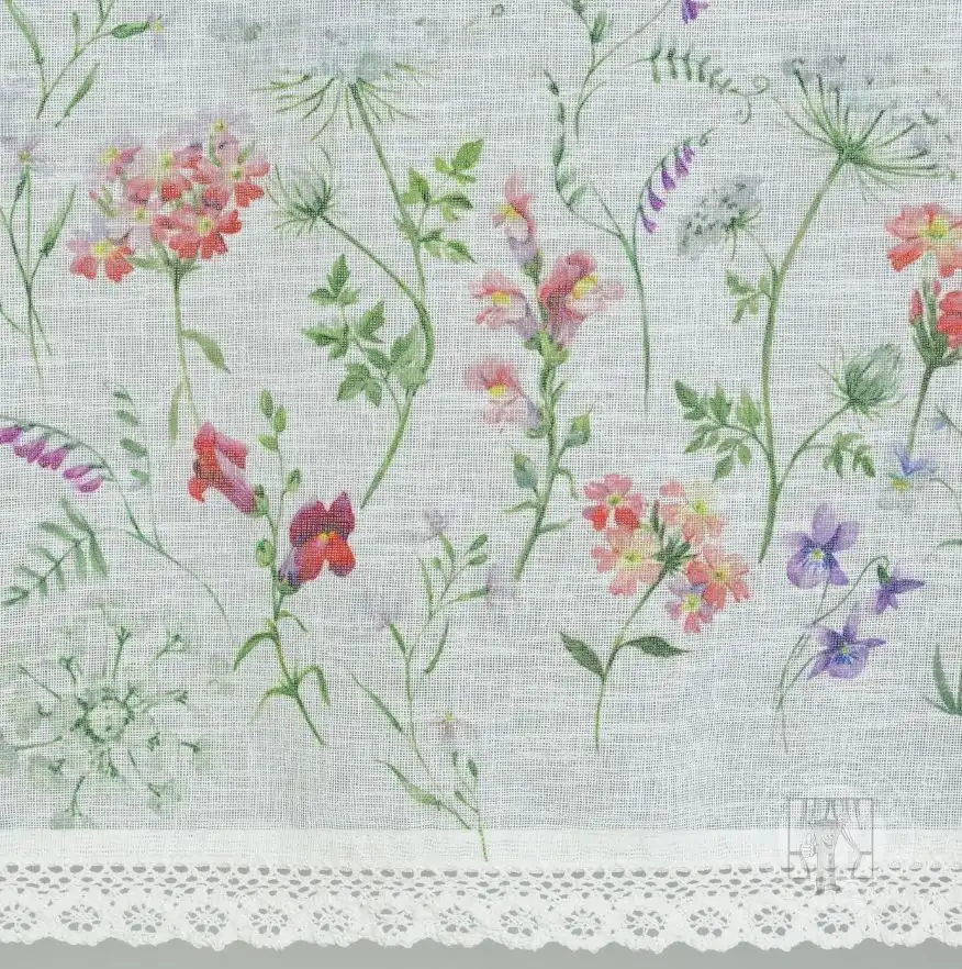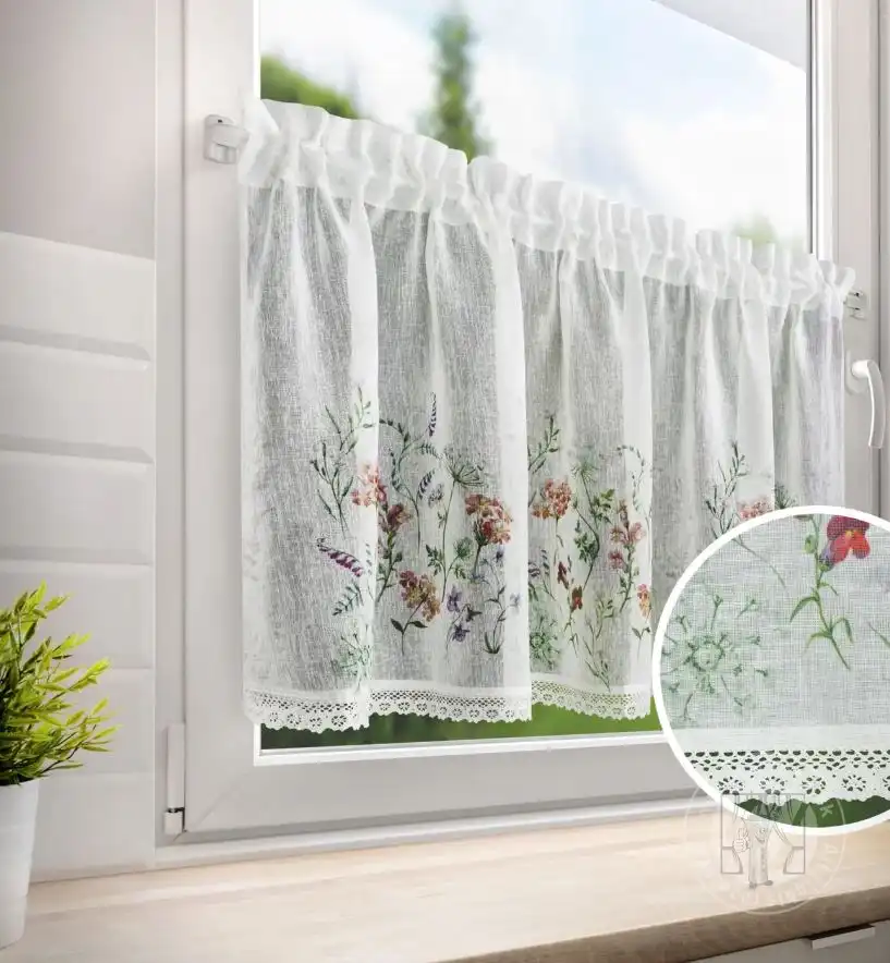 Záclona v bielej farbe s motívom lúčnych kvetov z husto tkanej nepriehľadnej tkaniny sa ľahko udržiava a žehlí. Praktický tunel v hornom okraji závesu, uľahčuje jeho pretiahnutie cez záclonovú tyč. Vďaka rustikálnemu charakteru záclony je vhodná do štylizovanej kuchyne.
