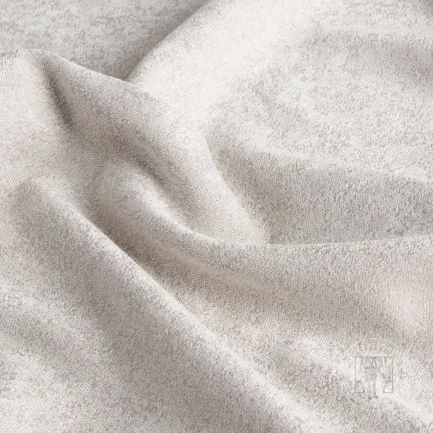 Jednofarebná žakárová tkanina so strednou hrúbkou a nerovnomernou melanžovou štruktúrou pozdvihne Váš interiér. Svetlá farba a jednotný odtieň tkaniny priestor opticky rozjasní.