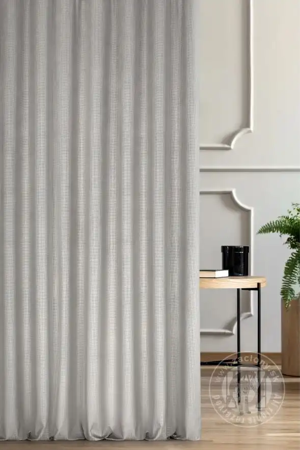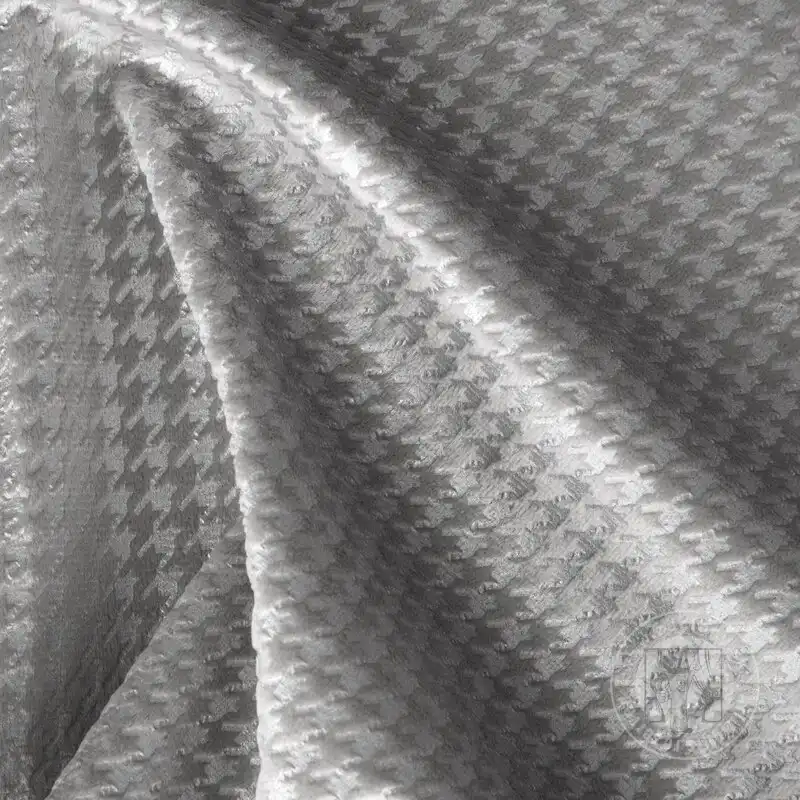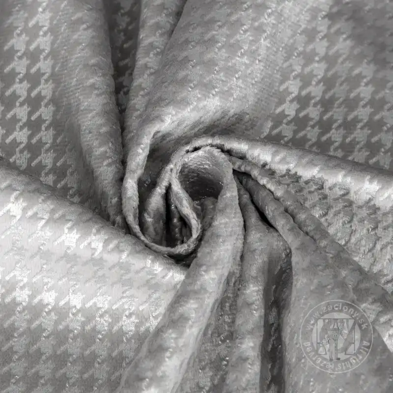 Trendový pepitový vzor v originálnom prevedení. Hladkú zamatovú látku zdobí strieborná potlač čo sa perfektne hodí do moderných interiérov. Zamatová látka chráni interiér pred nadmerným slnečným žiarením, zatepľuje ho a vytvára príjemnú atmosféru.