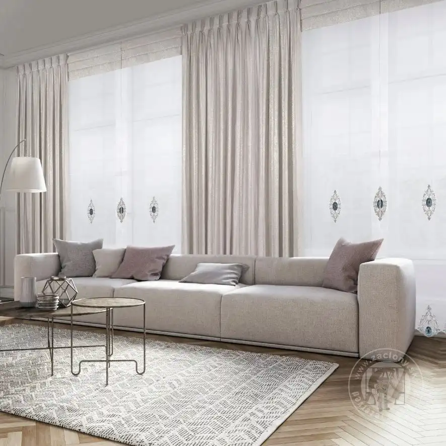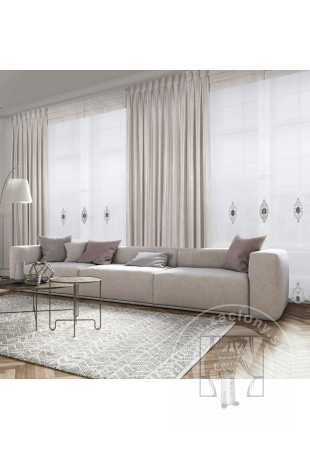 Moderná, husto tkaná záclona pretkaná lesklou niťou vynikne v modernom aj v klasickom interiéri. Ľahká polopriehľadná látka s trblietavým efektom má prirodzený a nevtieravý efekt. Vďaka hustej väzbe obmedzuje prenikanie slnečného žiarenia do interiéru, preto je vhodná najmä do silne presĺnených miestností.