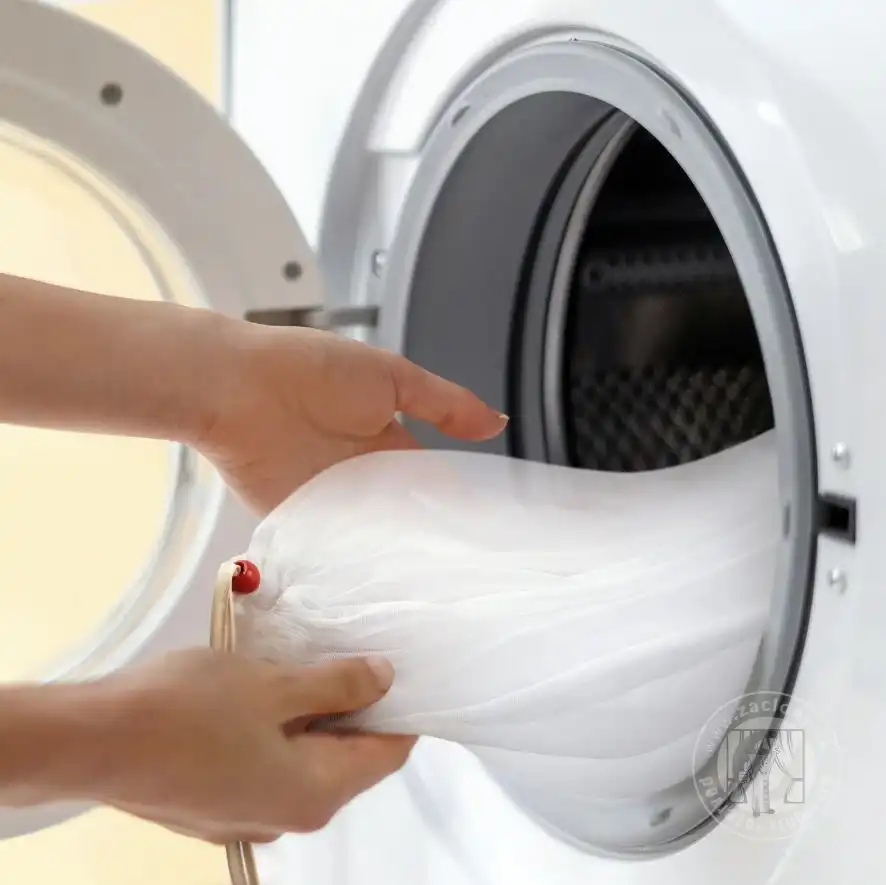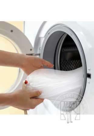 Rozmýšľate ako prať jemné záclony a veľké závesy bez toho, aby došlo k ich poškodeniu? Praktický prací vak je pri praní takýchto kúskov neoceniteľný. Vrecko chráni jemné látky a rôzne aplikácie na nich ako sú flitre, kamienky, či výšivky. Je vhodné aj na najjemnešie tkaniny ako hodváb, voál či kašmír. Chráni tkaninu aj bubon práčky pred poškodením, čo umožňuje prať aj záclony vybavené kovovými priechodkami či plastovými háčiákmi alebo štipcami.