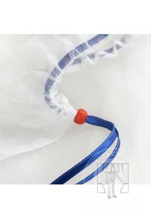 Prací vak je vyrobený odolným syntetickým materiálom a uzatvára sa pomocou šnúrky s patentom, ktoré zabezpečuje bezpečné uzavretie vrecka.