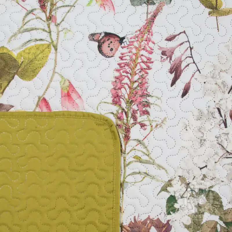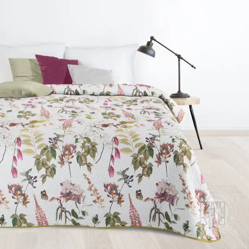 Prehoz ROSA s kvetinovým vzorom vnesie do Vášho interiéru letnú sviežosť! Druhá strana je navrhnutá v svetlozelenom odtieni. Vďaka vrstve elastickej výplne sa prehoz prirodzene obopína okolo postele. Moderná metóda bezšvového prešívania (hotpress) zvyšuje pevnosť látky, čím zabezpečuje dlhšiu životnosť.
