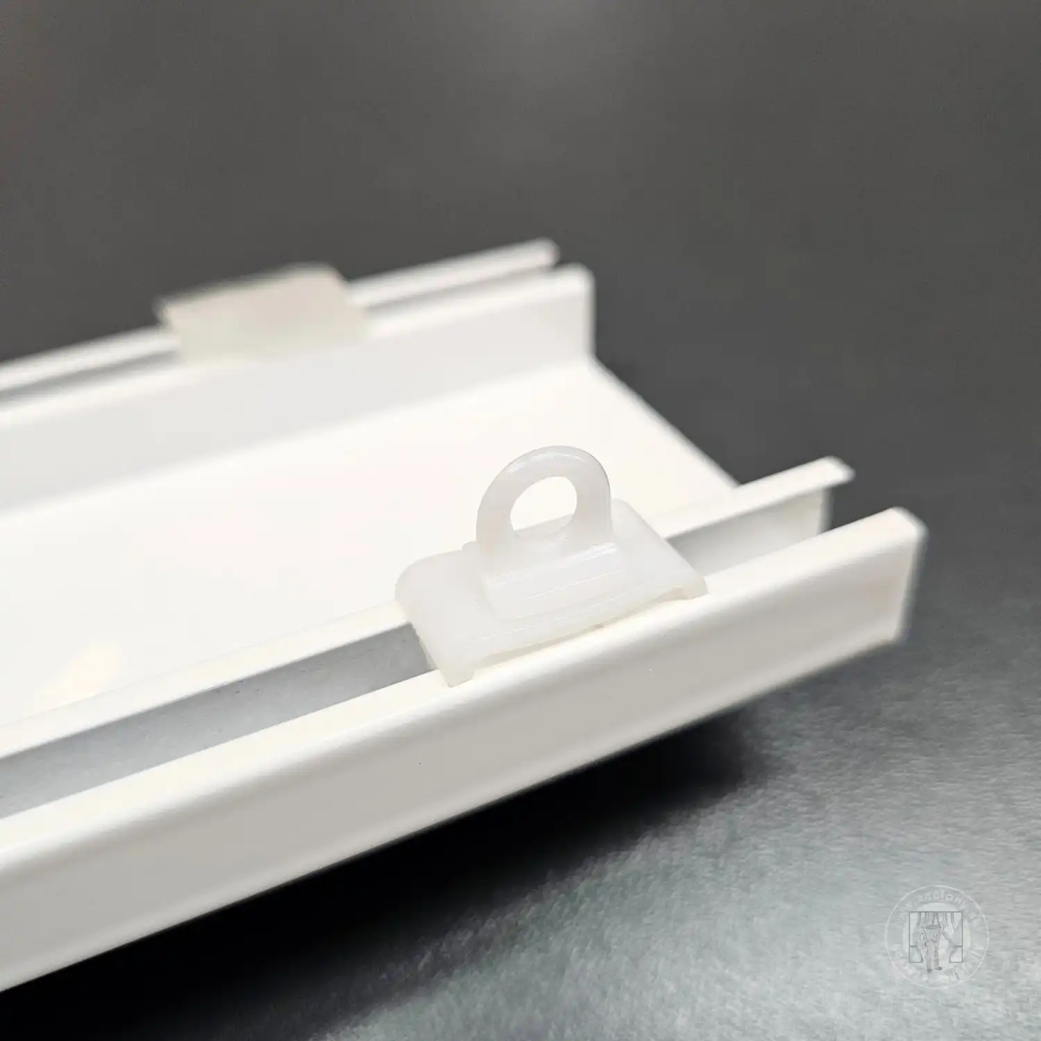 Brzda na koľajnicu je skvelým pomocníkom pri vešaní záclon, či závesov. Slúži na uchytenie riasiacej pásky, aby sa nám záclona po koľajnici neposúvala a riasiaca páska ostala pekne napnutá. Pri šikmo šitých záclonách (v podkrovných izbách) ju oceníte ešte viac.